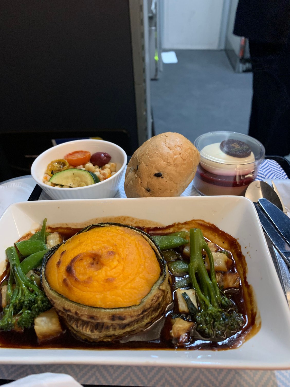Drinks were out in about 15 minutes. No trolley just seat to seat. Club was far from full. It made for a good contact with the crew. The Champagne was deliciously cold. Fever Tree is the Tonic aboard. Both of us think it bland and far prefer Schweppes. The revolution of Aviation Gin is back together with decent gin such a Tanqueray and Gordon’s.