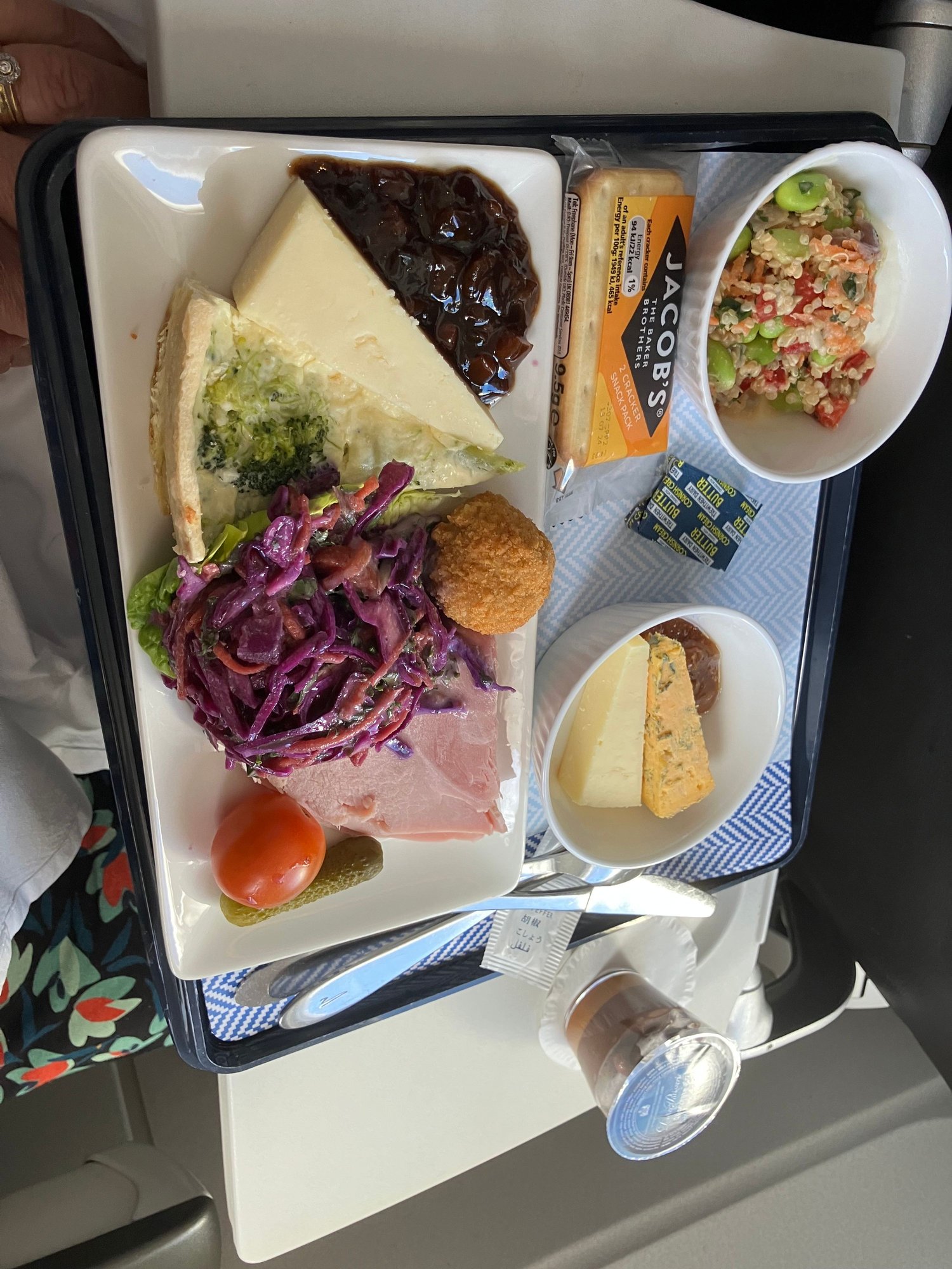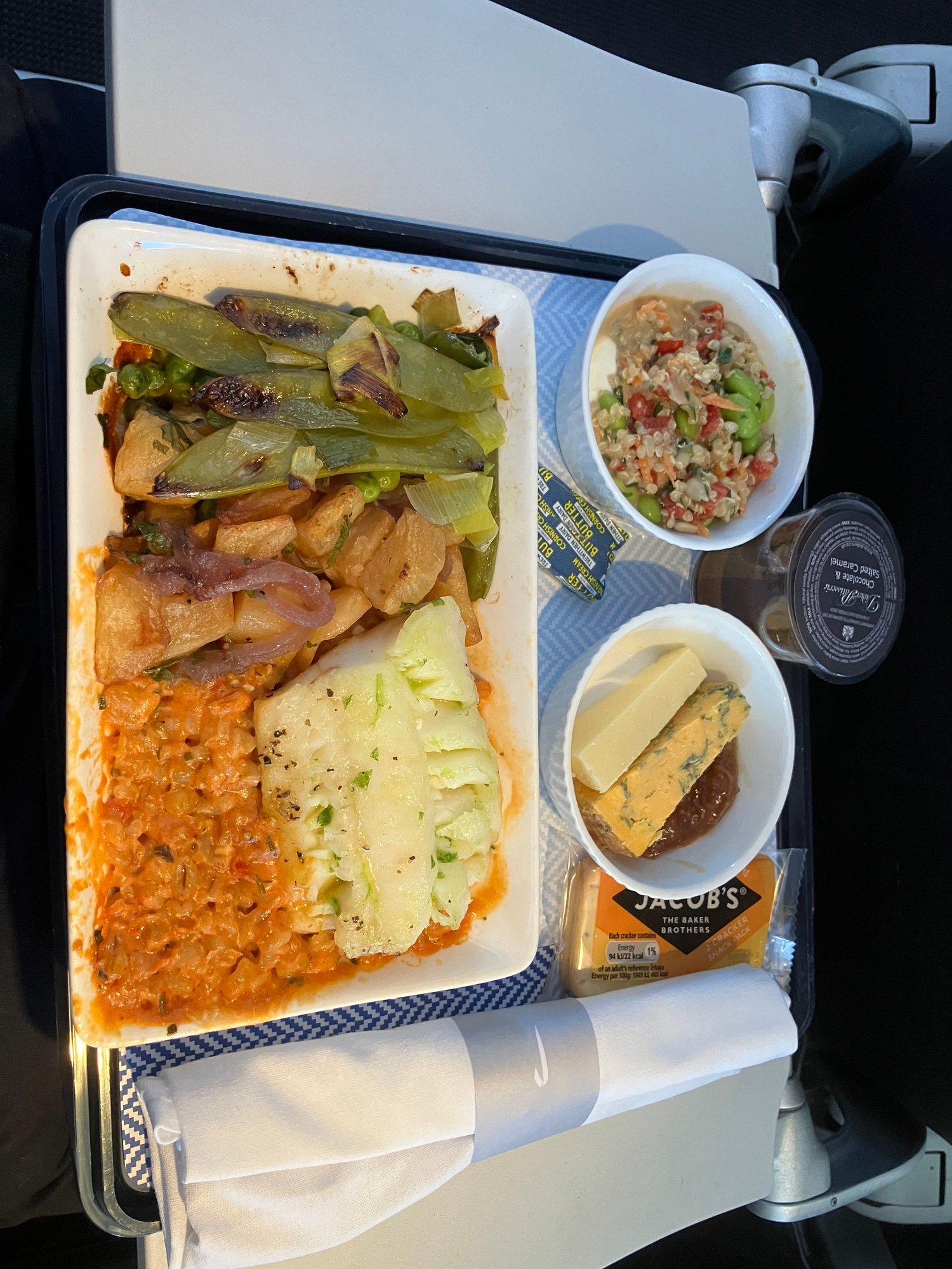 Cabin crew on this, our return flight, were much better than the outbound. Menus handed out, orders taken, pre-lunch drinks run, meals were well presented, bread run, another drinks run. Then coffee and tea orders and later in the flight a snack basket was brought around and further drinks requests fulfilled. All, IMHO, due to the team being led by a young but very proactive and professional lead (not sure what they are called on SH nowadays, IFL?). Showed the best side of BA and how it can and should be done on every flight.