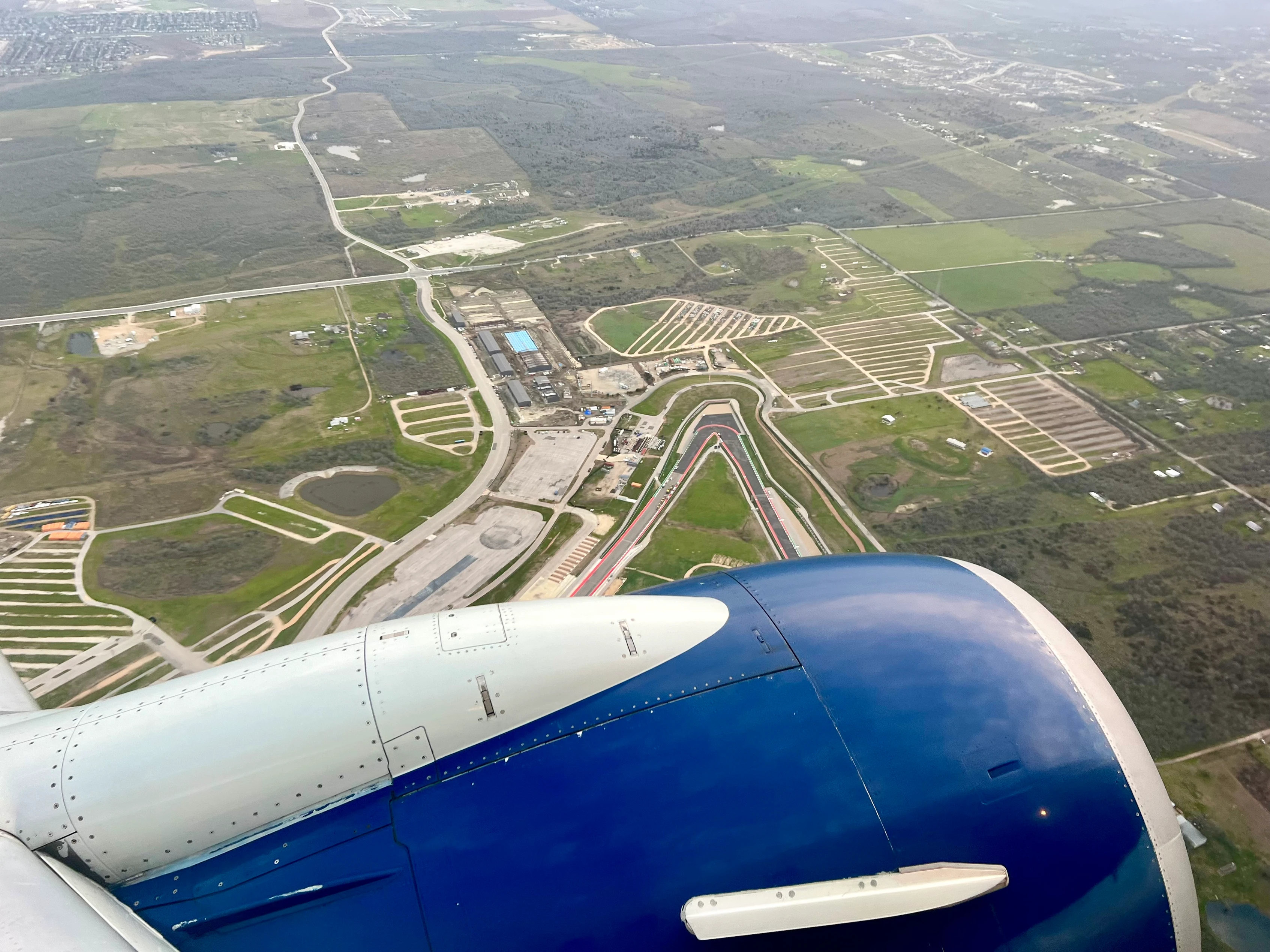 At 7:35a we were cleared for takeoff and headed south before making a turn to the northeast over Circuit of the Americas. With nobody in the middle seat I pulled up the IFE on one screen and live TV on the other.