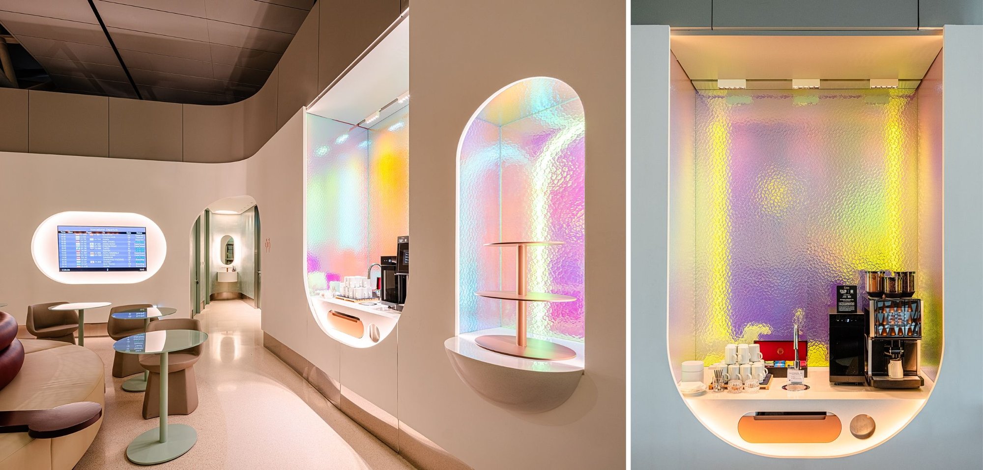 In this pic and t'other we can see a lot of element from the Seoul lounge directly repeated here, such as that semi-circular seating area facing onto the tarmac (and indeed, same lighting)...