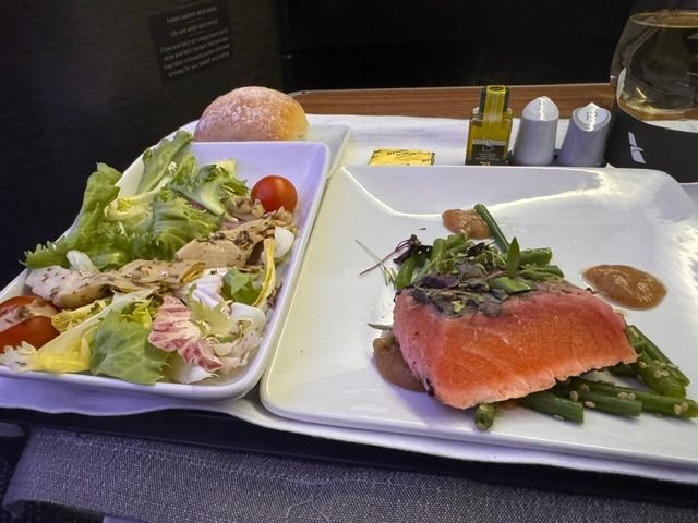 Here's the salmon starter and main from recent LHR-DFW on 777