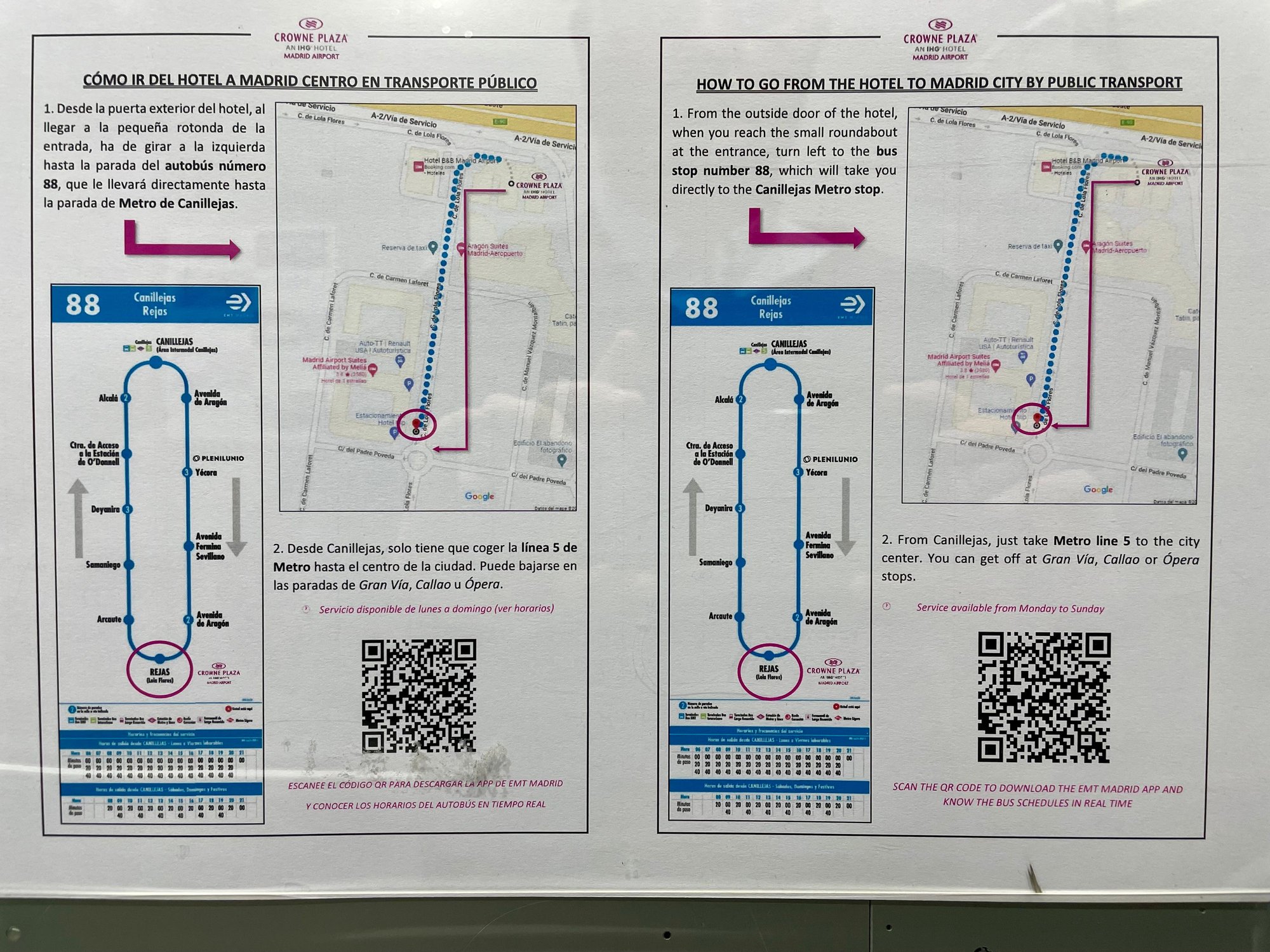 The hotel has a shuttle with a fee (EUR 7.5 per person): you need to book it in advance at fixed time. It brings you to the hotel in less than 10 minutes. Bus stop is the same for all hotels at MAD terminals.