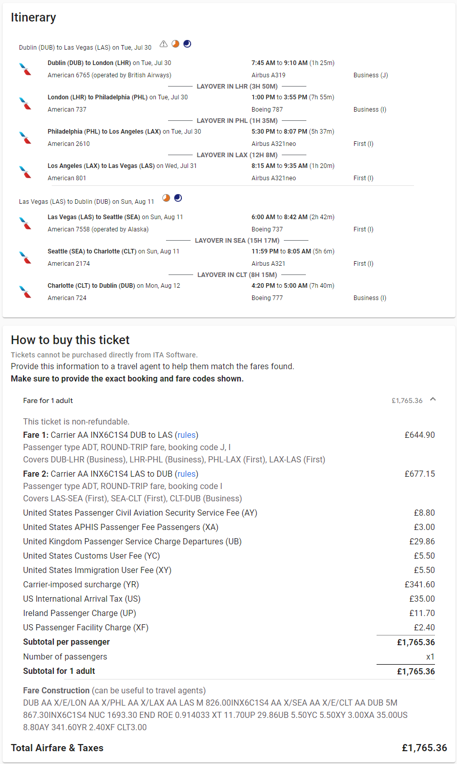 My current research has given a positioning to Dublin (with Ryanair) and then DUB-LHR-PHL-LAX-LAS-SEA-CLT-DUB 30th July - 11th August for £1,765.