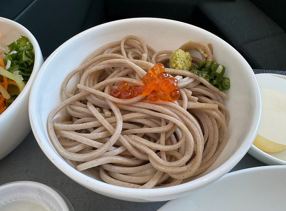 Japanese soba noodles with salmon roe