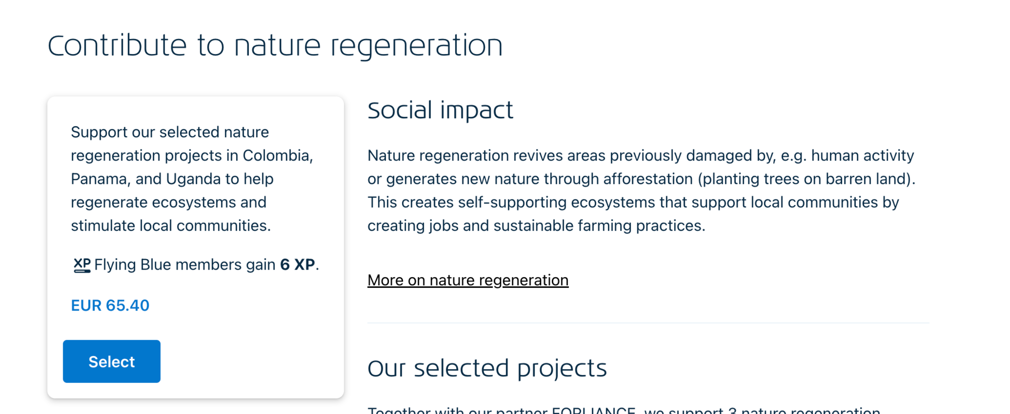 As soon as the "Nature Regeneration" option is expensive enough, it shows how much XP you earn (note the rounding down on the EUR to XP conversion).