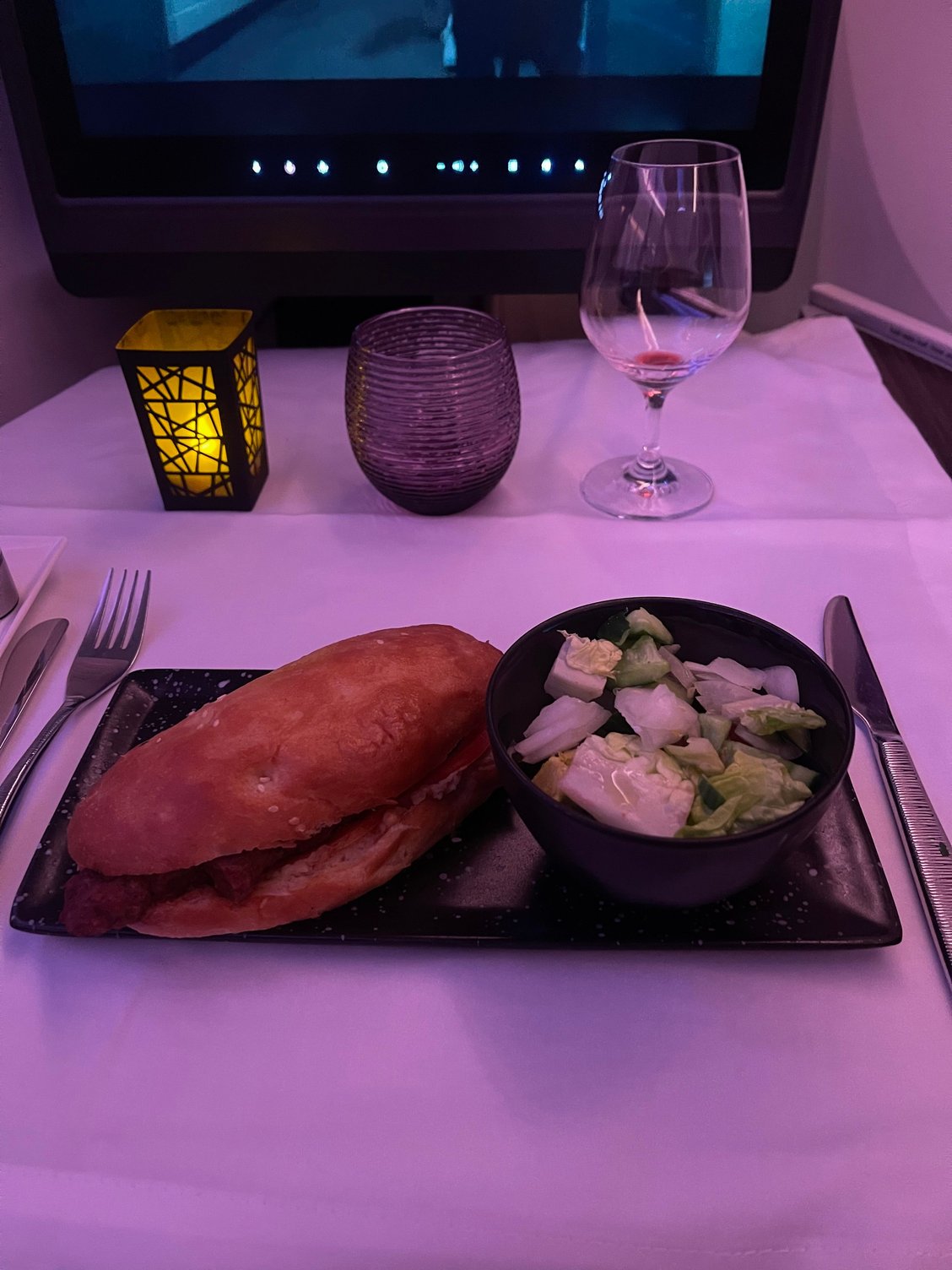 Lamb Adana pide sandwich with Greek salad DOH-LGW