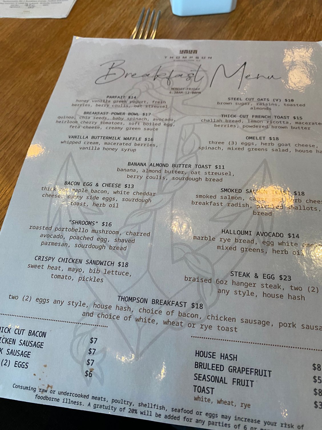 Breakfast menu
