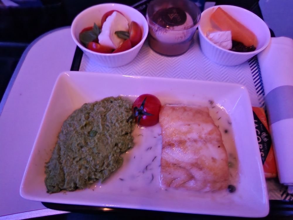 The cod was delicious, and the mushy peas really complimented it. The starter of tomatoes and buffalo mozzarella was excellent as well.