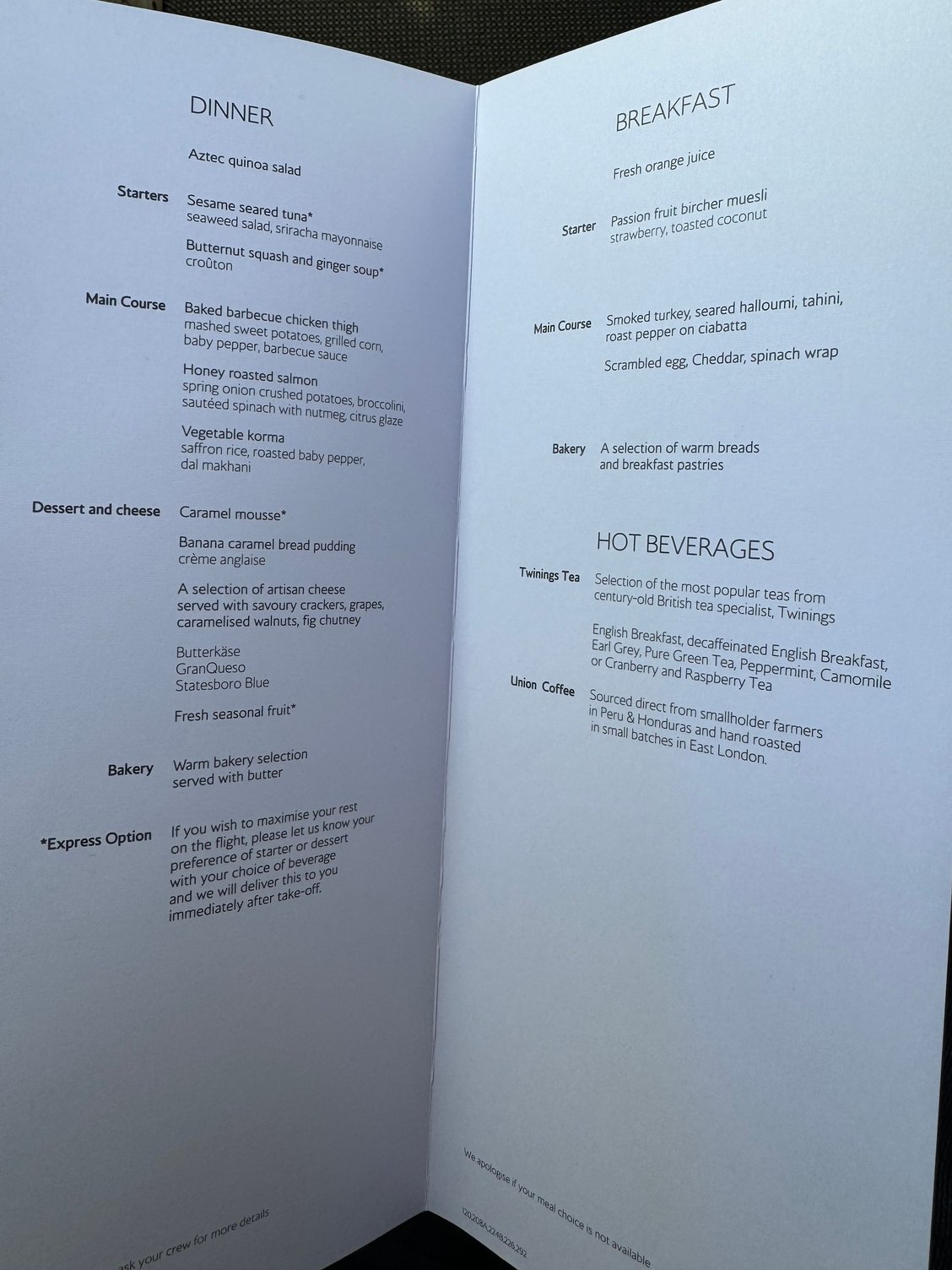 ATL-LHR on Sunday night. A really disappointing menu IMO, especially as the lounge at ATL is so poor and increases the likelihood of wanting a decent meal on the plane.