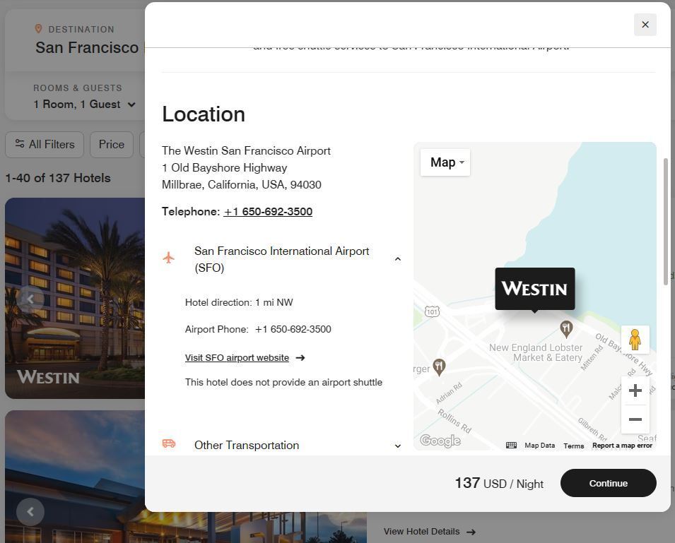 However, if you go to the hotel via the hotel listing in the reservation process, the shuttle is not provided :
