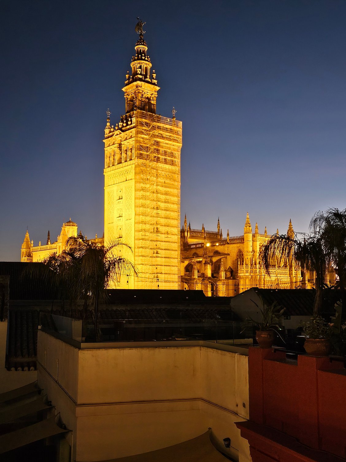 There is a bar on top of the hotel with magical views of the cathedral.