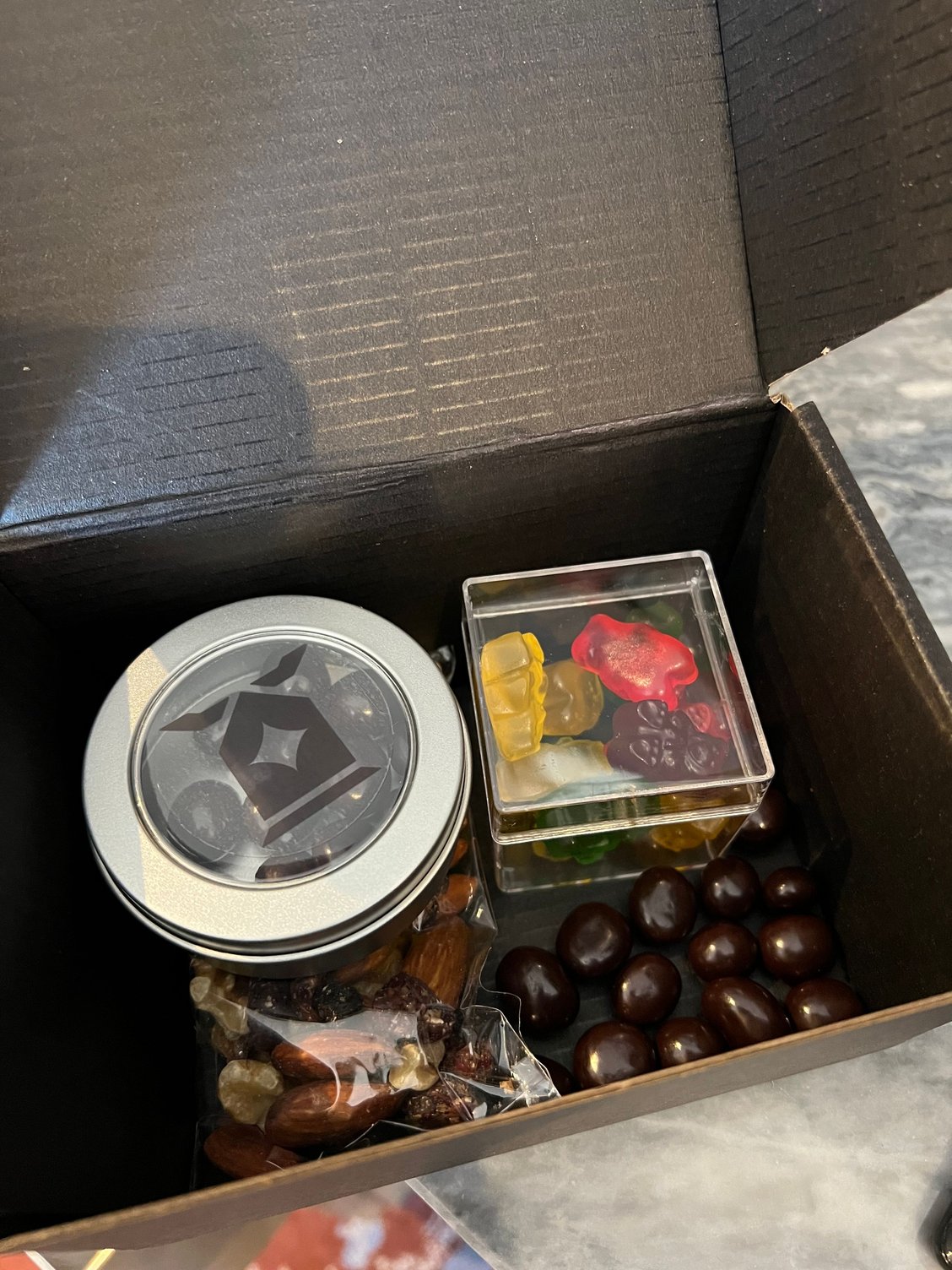 - Welcome gift box of chocolate covered espresso beans, gummy bears, and nuts was nice, despite some of the beans spilling