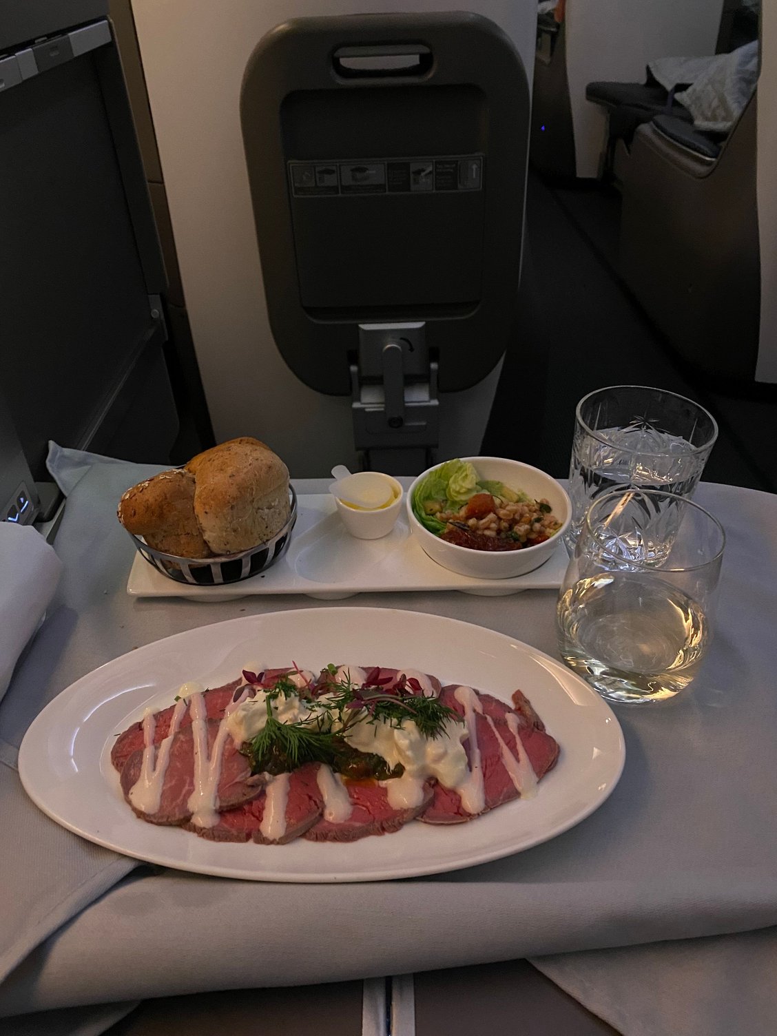 BA55 LHR/JNB last night. Dinner served one hour after take off. The Carpaccio was really good and the Butter Chicken Curry tasty. I didn’t have a pud. Good friendly, attentive crew and an on time arrival. Even better I am now Silver 🥳