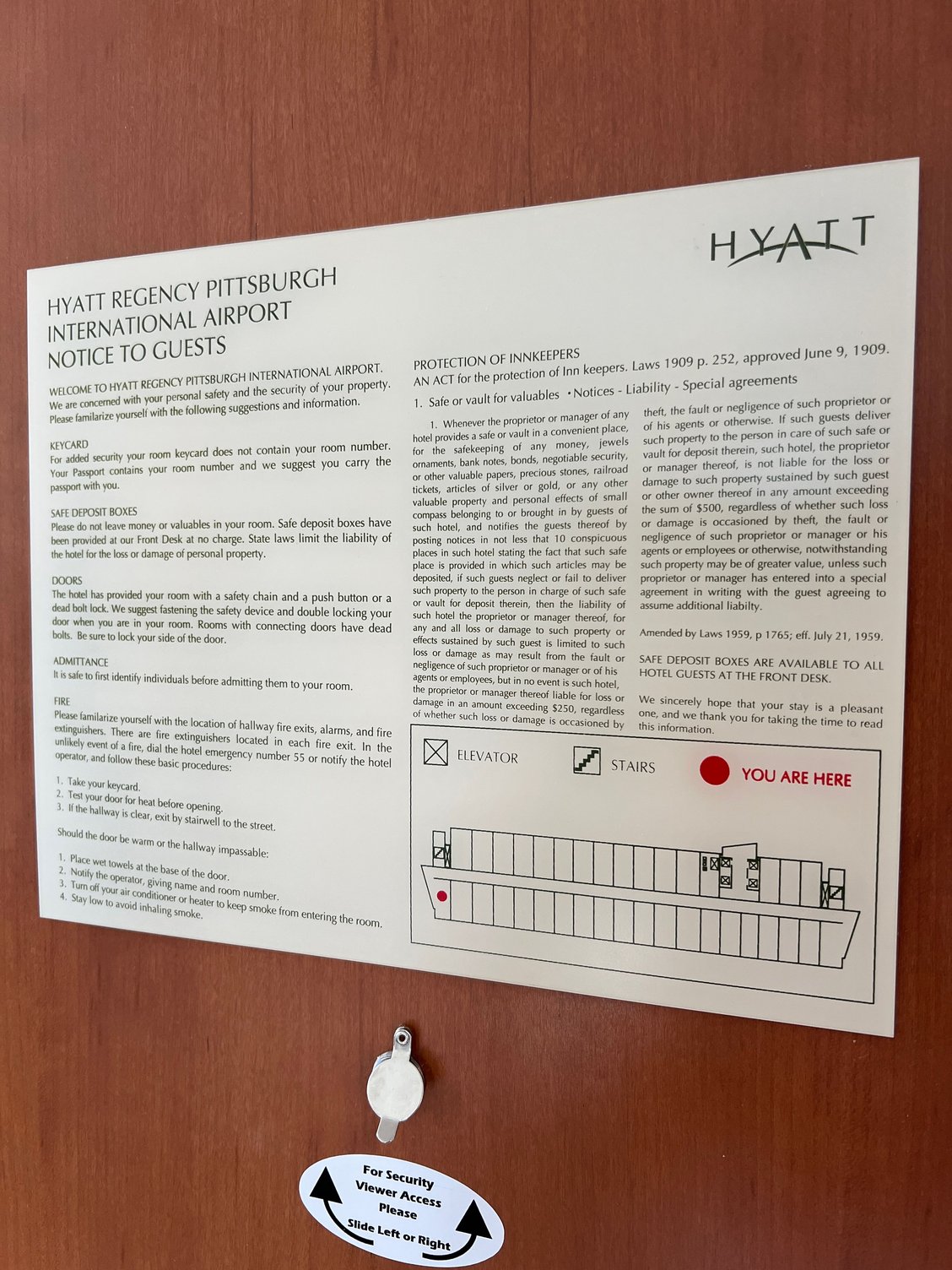 For me, the Hyatt Regency Pittsburgh Airport was fine and suited my purposes of having a hotel where I didn’t need to rush for my 8:30 AM flight - the airport connection via sky bridge works as well as one would hope. Here are my impressions: