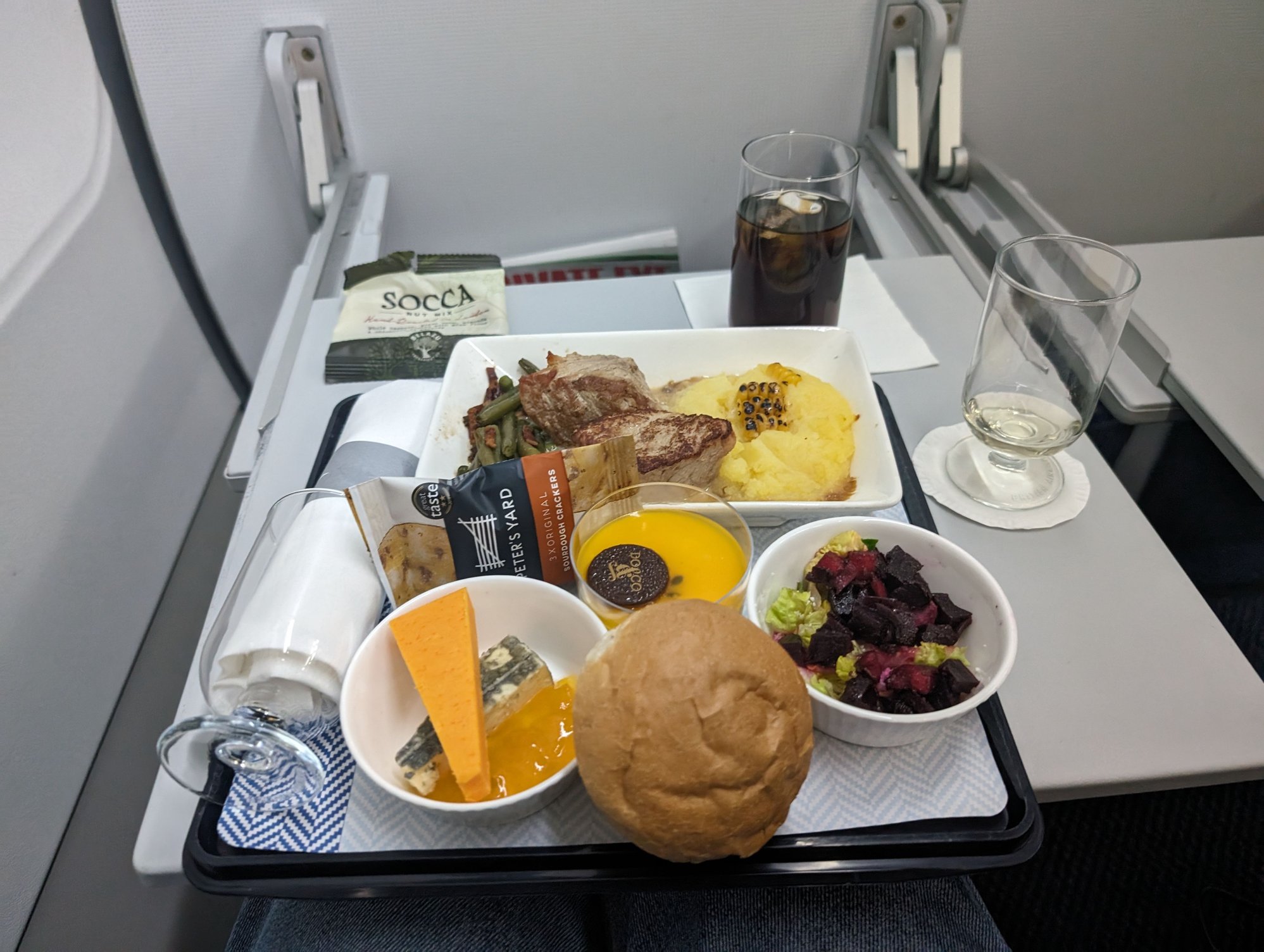 This was followed by a snack basket run and several more proactive drinks runs throughout the flight. All very well paced.