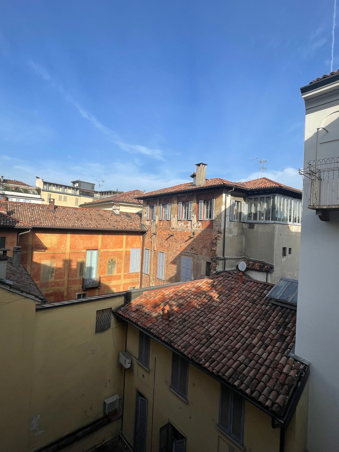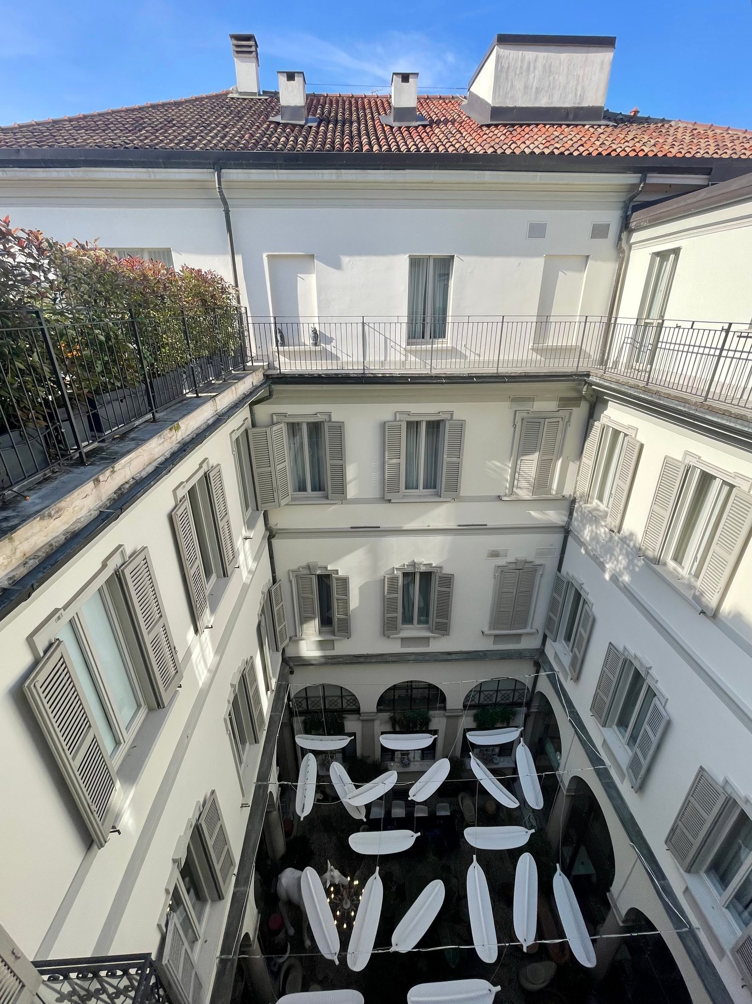 View over the courtyard and Milan’s roofs.