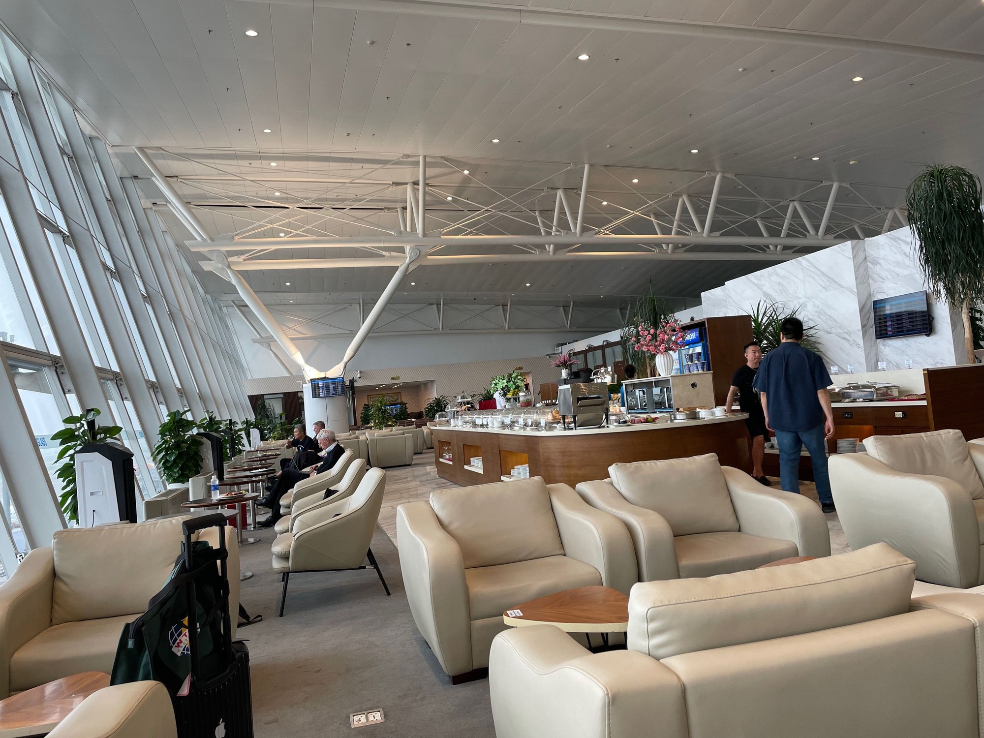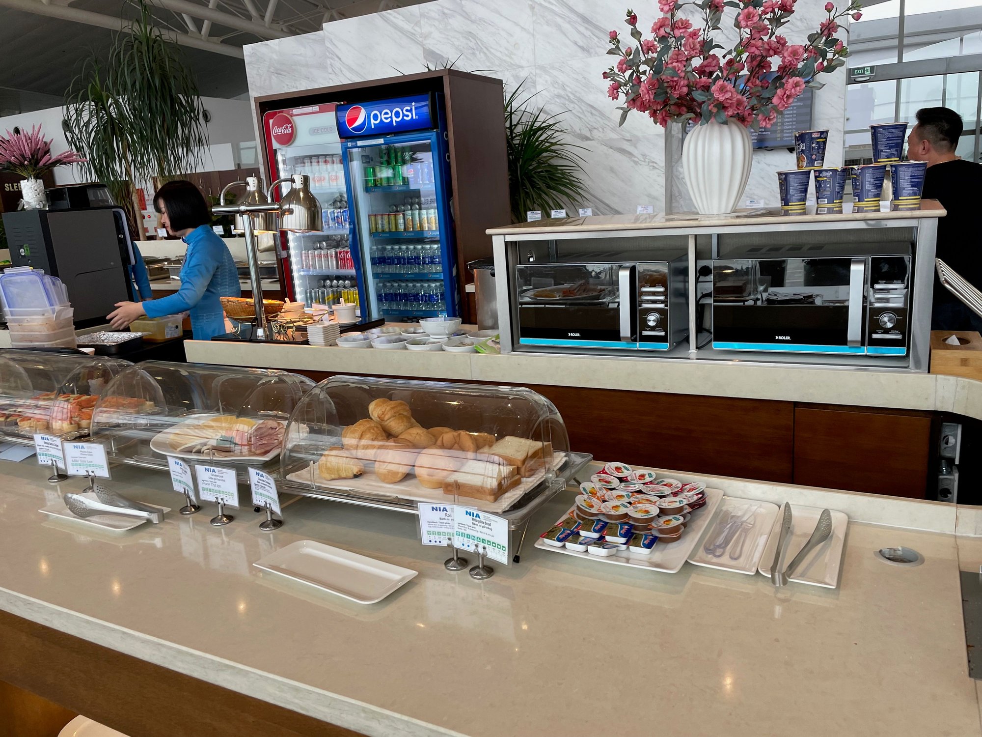 Am sitting in the NIA Lounge (is this the Song Hong Business Lounge?). Very spacious and quiet. Reasonable selection of food and drink, seats comfortable and with a good view of the runway. Very pleasant and happy to spend a couple of hours here...