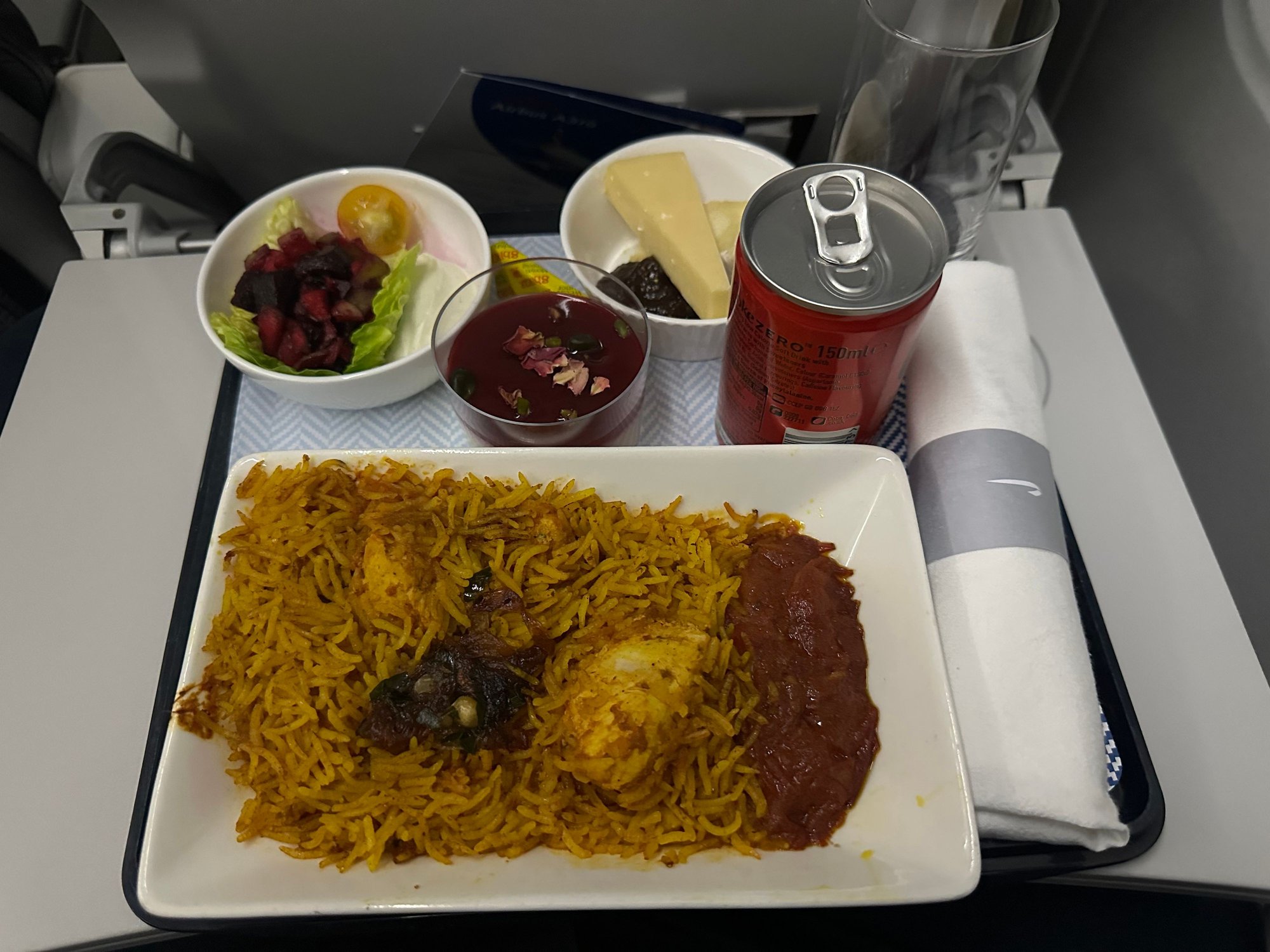 No menus, tasty “chicken and rice” dish that looked suspiciously like a biryani. No cheese biscuits meant a cheese and pickle sandwich to finish off proceedings.