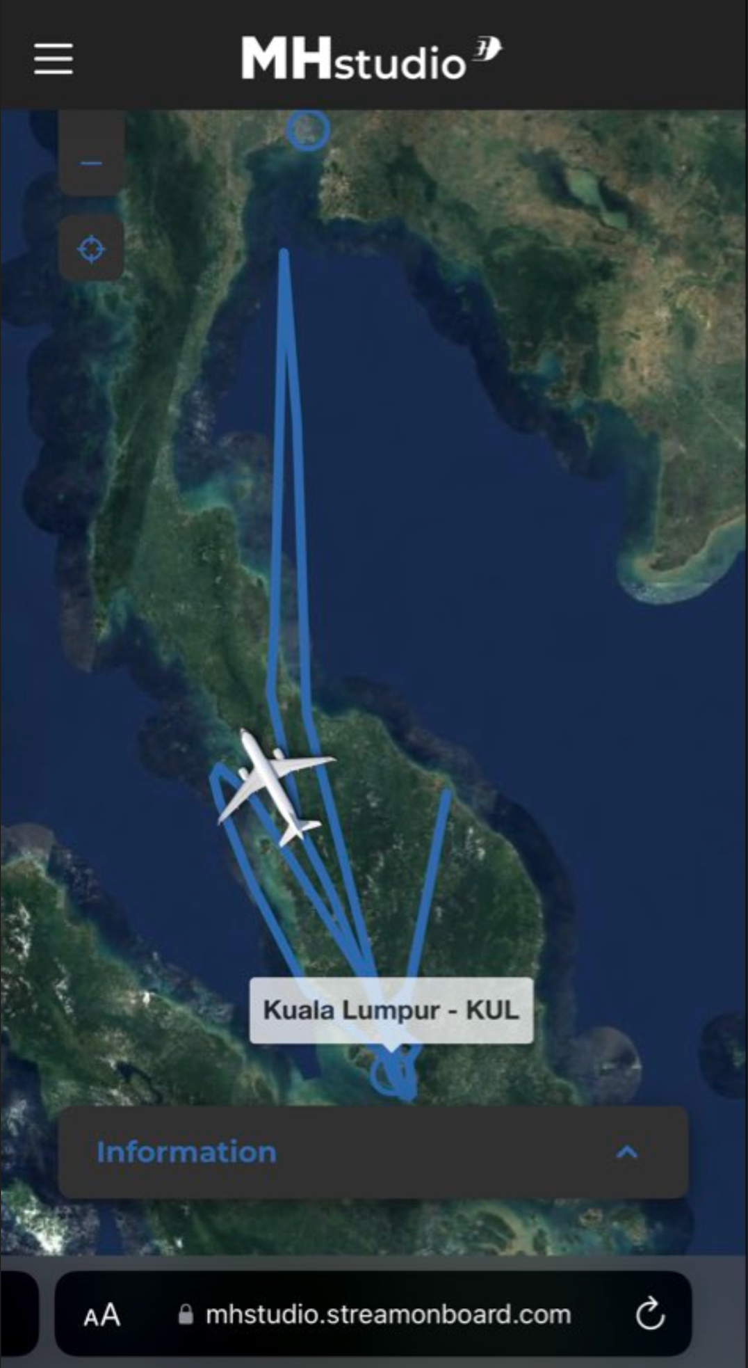 6. Malaysia Airlines IFE on the HKT-KUL route: No screens, you have to connect to their wifi and use your own device. If it works ... I tried to watch the flight info ... this is what it looked like:
