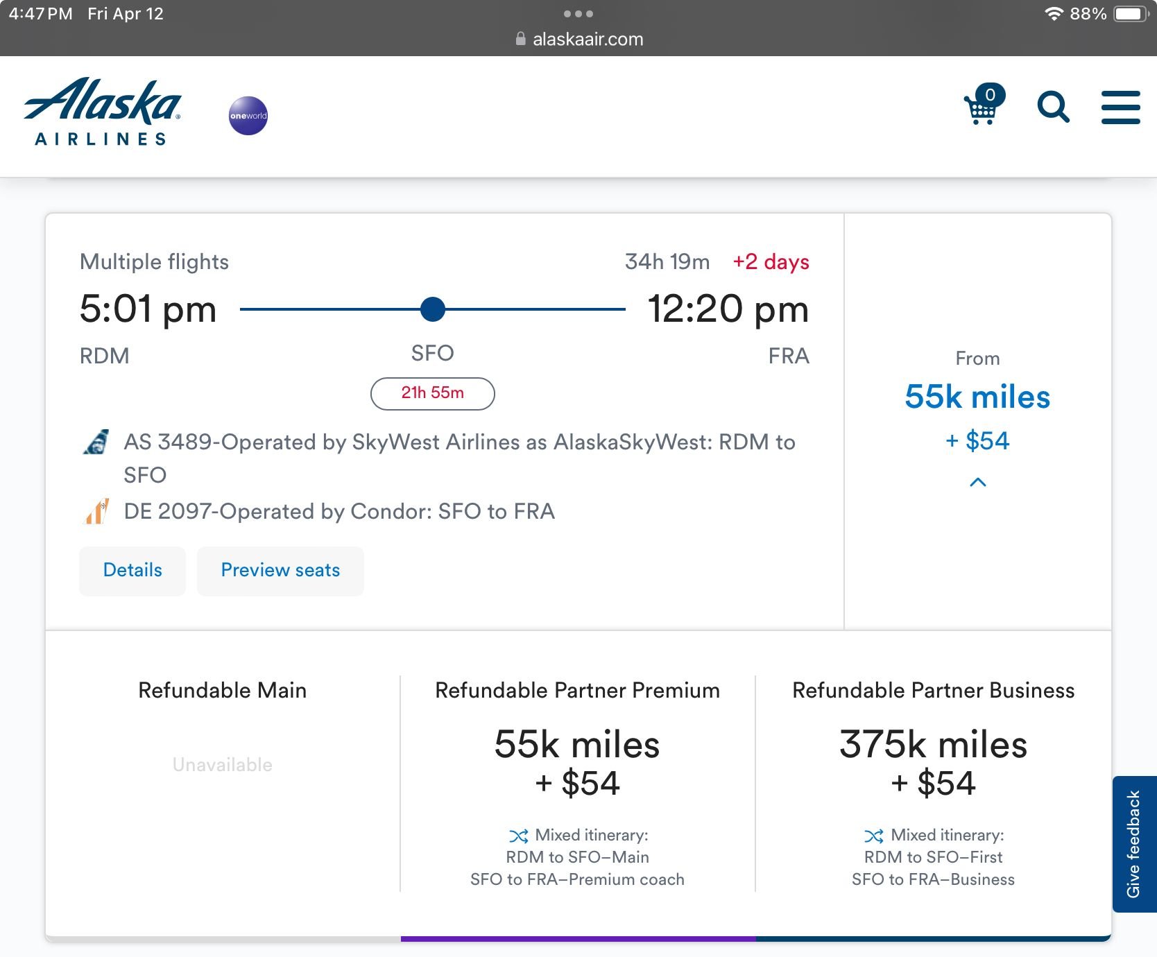 Anyways, too bad people can’t find anything, I’d liquidate your AS miles and use a different program. I hear Delta offers superb redemption opportunities for business class out of Seattle at low mileage.