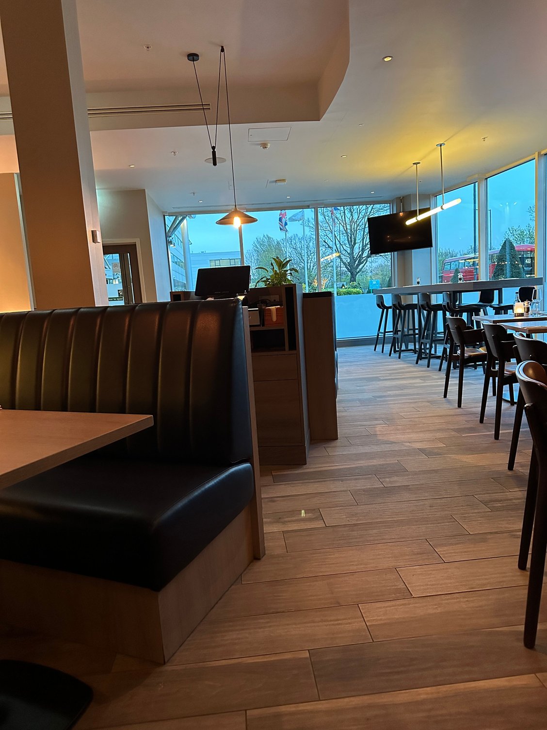 - We arrived at LHR T5. I find Uber/Bolt to be too expensive from LHR, so in the case....it was the bus. While we do not like the Hoppa buses, we were prepared to take the next departing option. That turned out to be TFL but 423. Easy and inexpensive enough but a pain with bags as everyone had bags and not much space for them. We managed. The bus stop (Compass Centre) from T5 is literally in front of the hotel entrance so that is extremely convenient and the stop across the road for buses going the other direction is also very convenient as there is a cross walk in front of the hotel, that is not always the case and very handy IMO.
