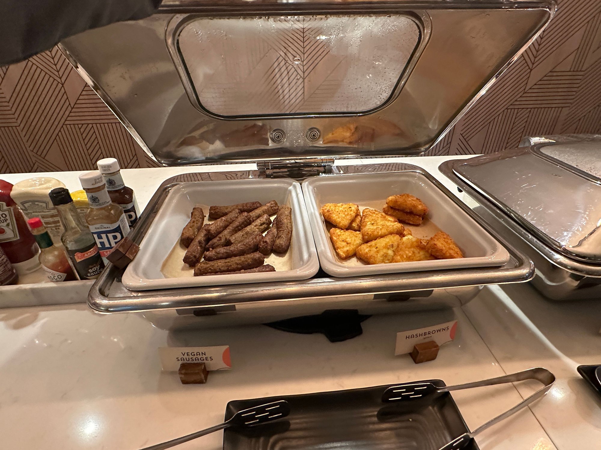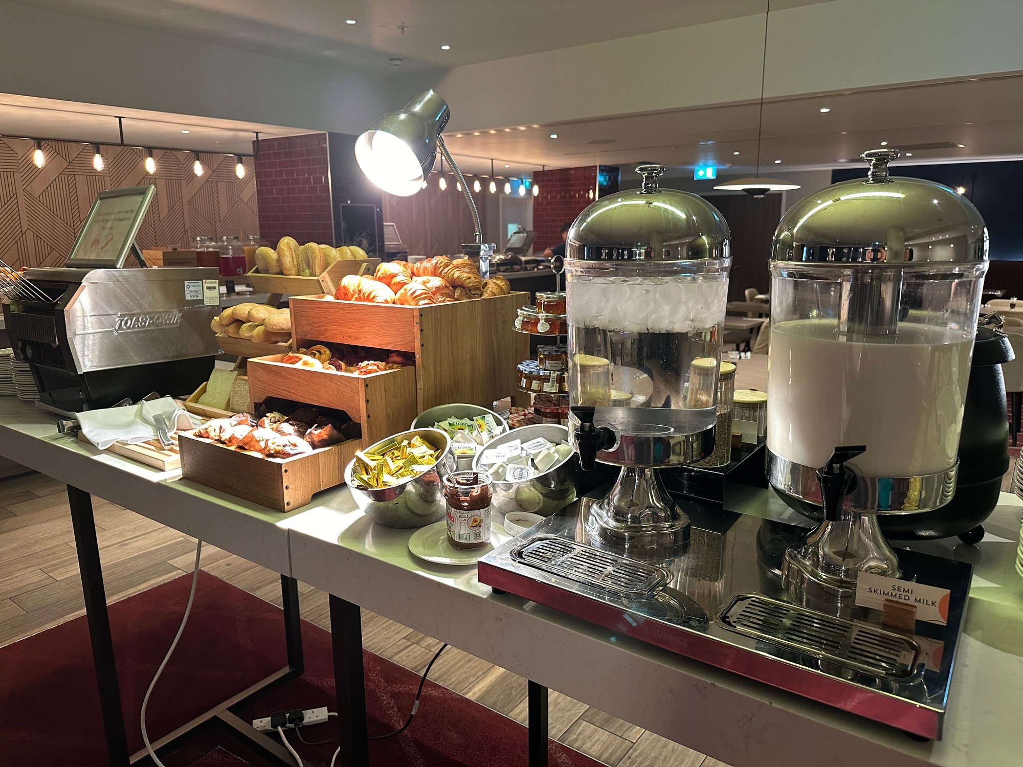 - We were at the restaurant at opening time the next morning. Staff explained it was completely self serve and for us to enjoy. It was complimentary as a Globalist of course and they have a list they check. Found breakfast to be a very pleasant surprise. The danish and breads were extremely fresh and the Comberland Sausages were very tasty. Definitely a far cry from your typical HP breakfast in the USA, not even close.