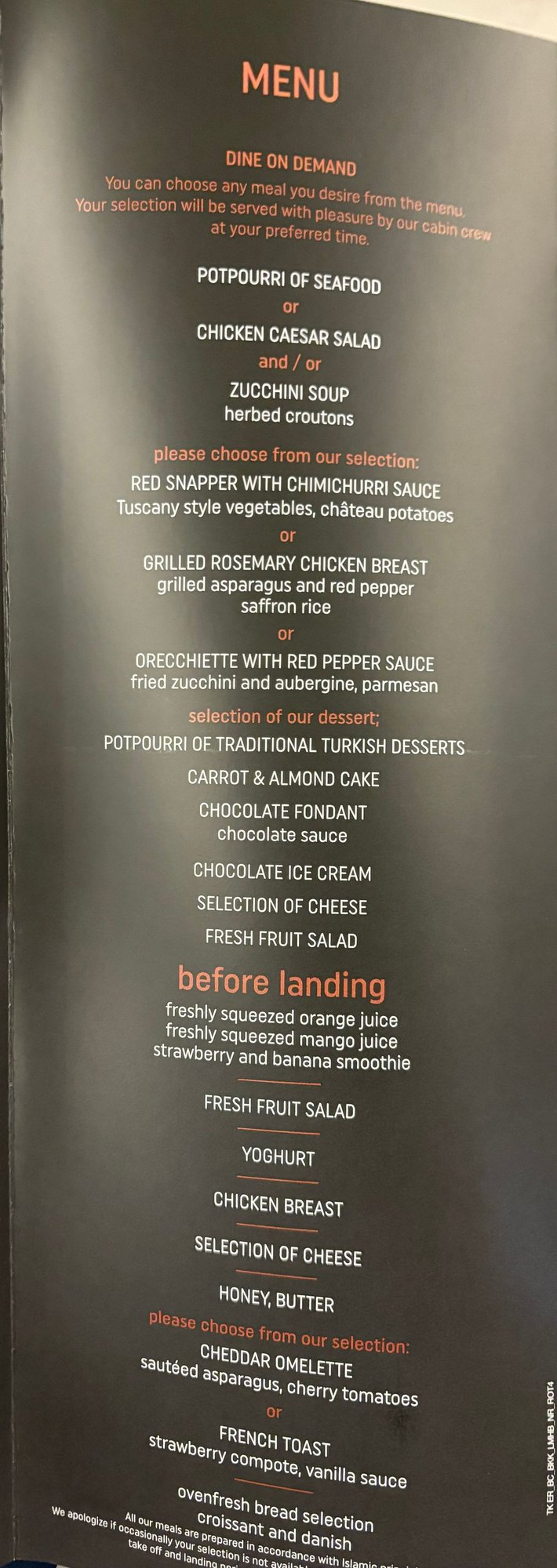 Overall decent meal, not as good as my two previous ones, but overall not too bad. Seafood starter was great, soup was meh, red snapper was pretty good albeit a bit dry, chocolate cake was decadent and divine, ice cream was frozen solid took nearly 20 mins of melting before I could eat it, but was alright once edible. Breakfast was alright too, nothing too special but not too bad. Also, apologies for not getting the wine list again, but it was the same as on my EWR-IST flight (post 911). Off topic, but I’m quite peeved that TK “took one for the team” and decided to use the satellite gates at BKK. Meaning if you’re using the BR or TK lounges, you got at least a 20 min journey to your gate.