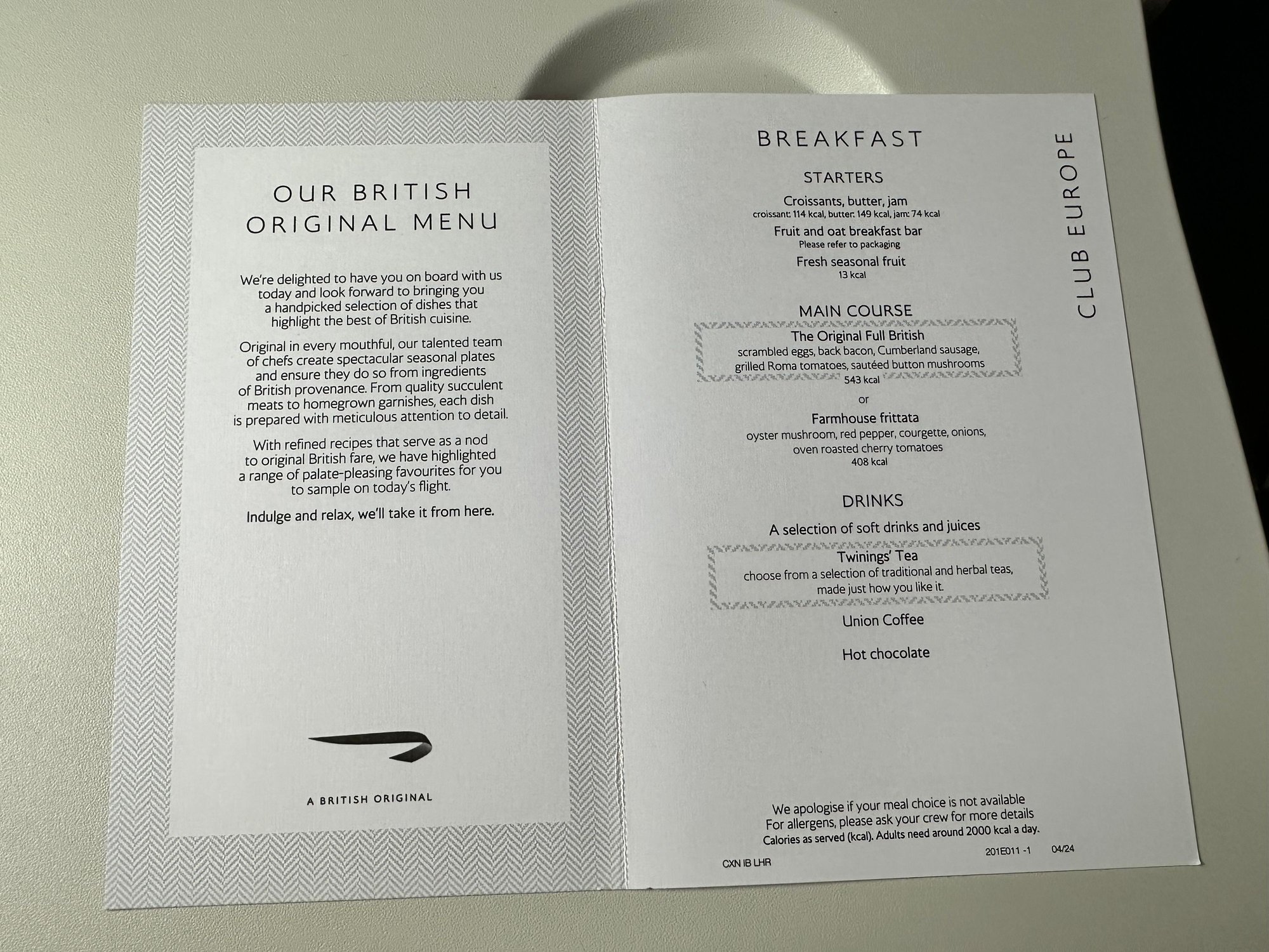 With five rows in front of the curtain there were 18 in total for breakfast and lucky for all concerned that it wasn’t a normal 10 rows or more in business because the crew made only 18 seats look hard. Not an awful crew by any means they were very pleasant but the service was pretty disorganised and slow.