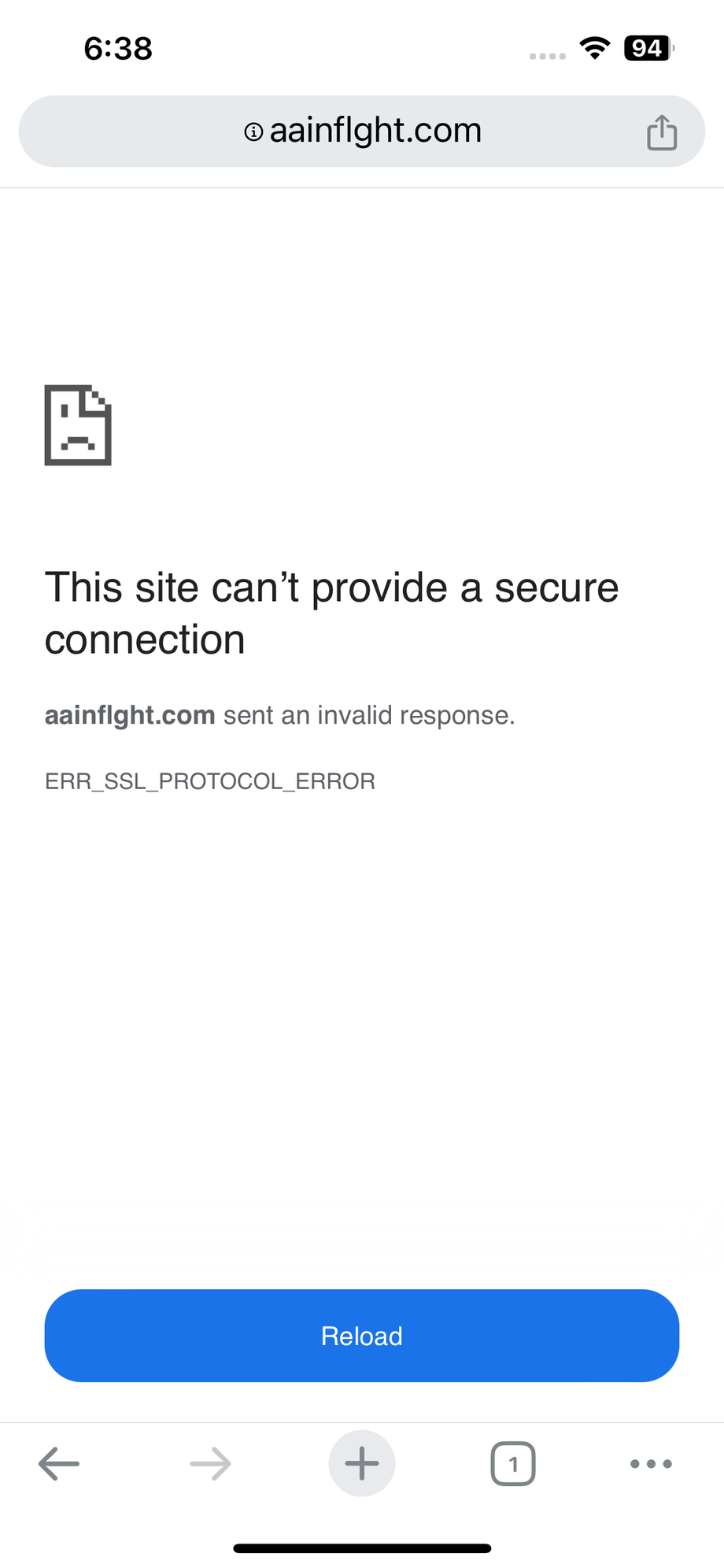 Does anyone know why I was unable to connect to aainflight from my iPhone (13)? The issue happened with both safari and chrome, on my last 3 flights. I reset network connections, rebooted, removed all plugins, etc. I had no issue with iPad, and the person next to me had no isssue with her iPhone.
