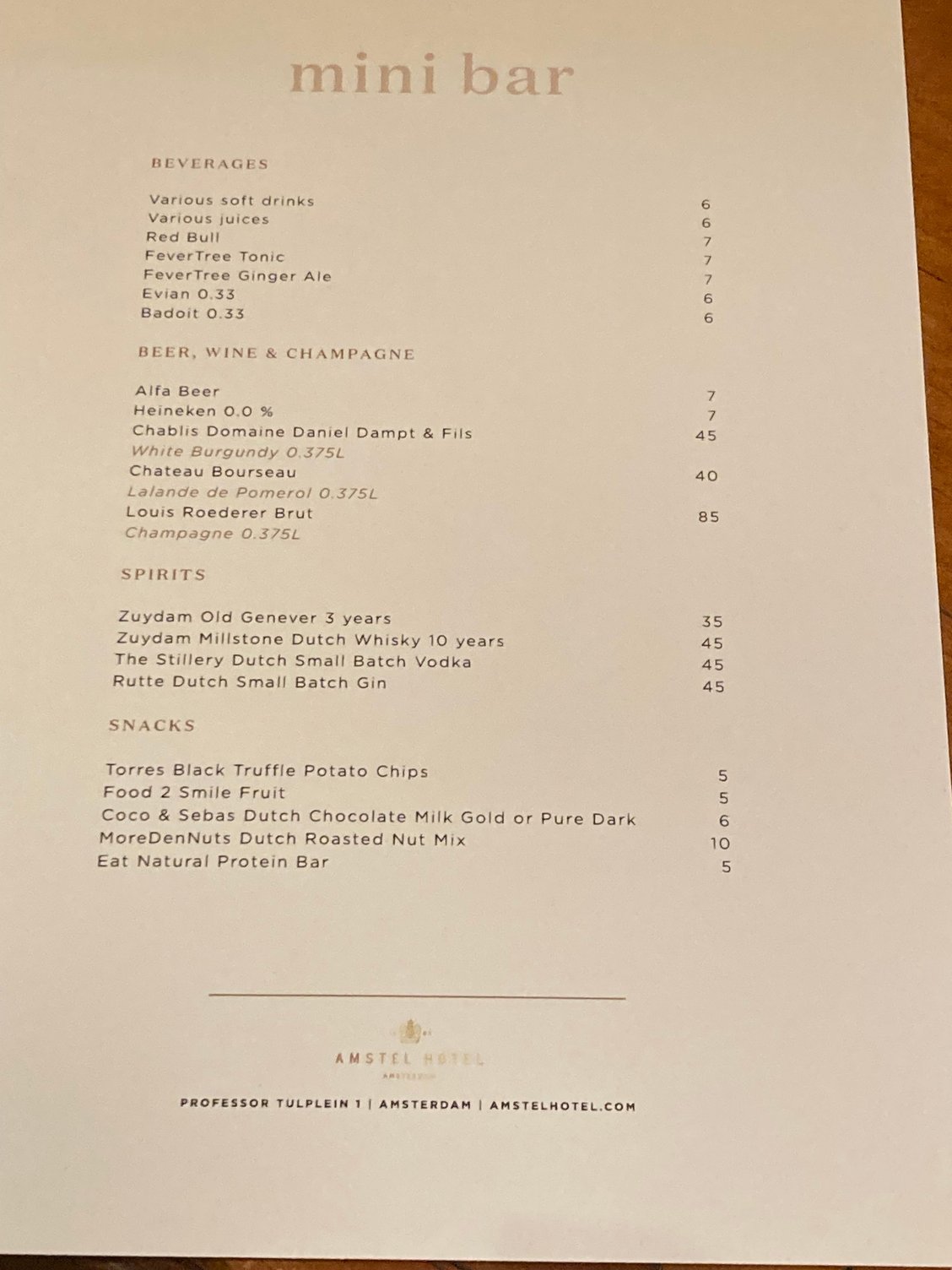 Minibar contents