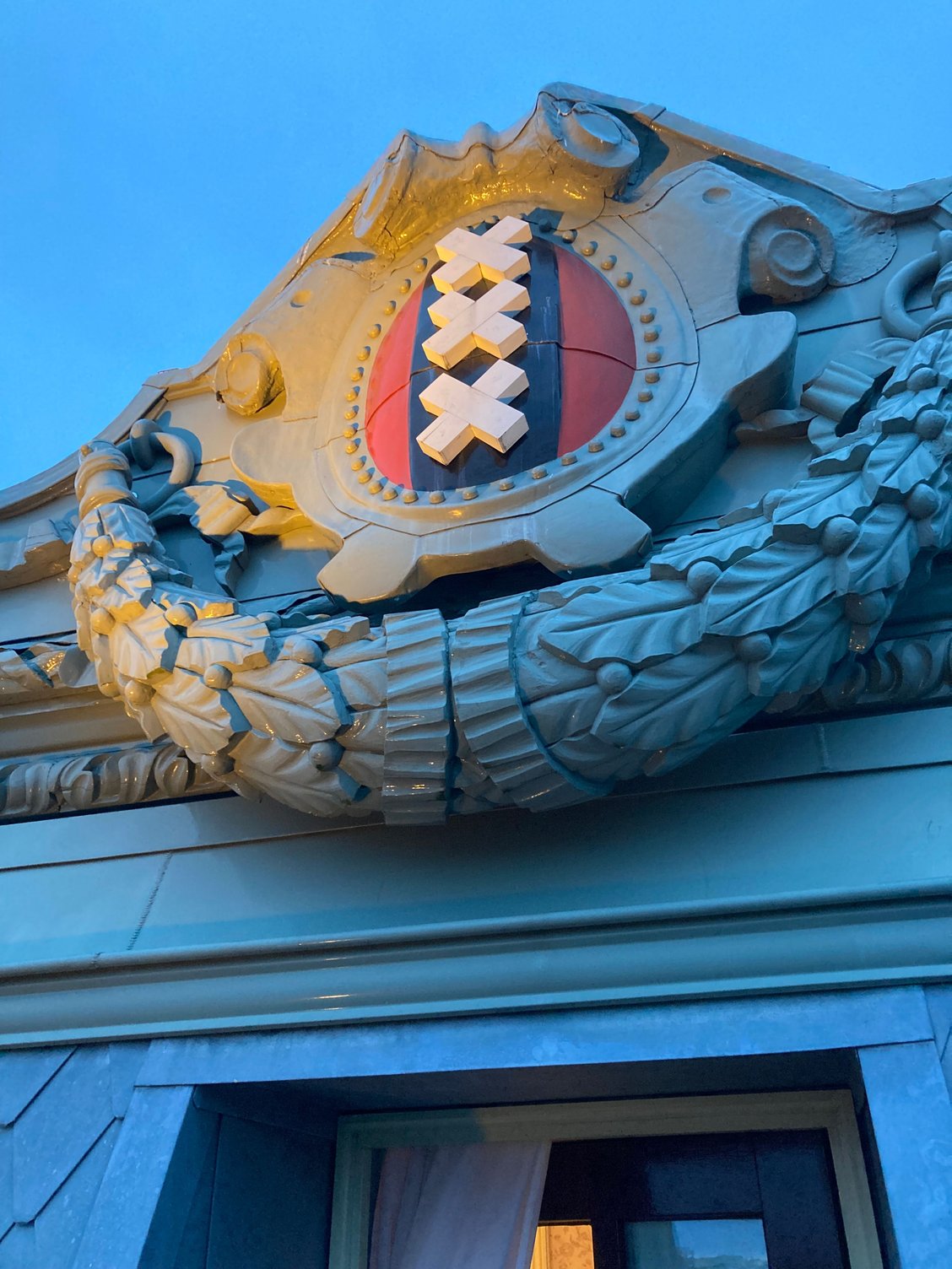 the authentic instagrammable sign of XXX the Amsterdam herald crest......