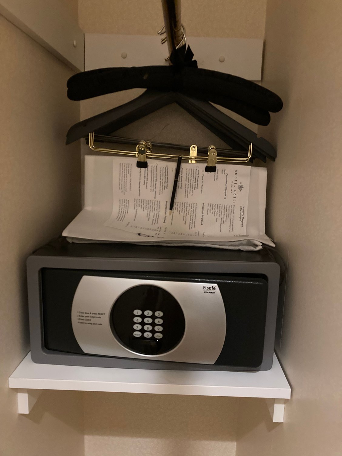 Closet has enough space to hang coats and also holds the safe