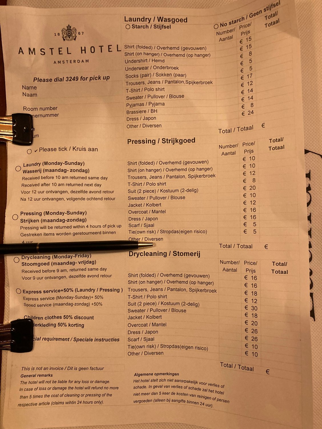 Current laundry pricing