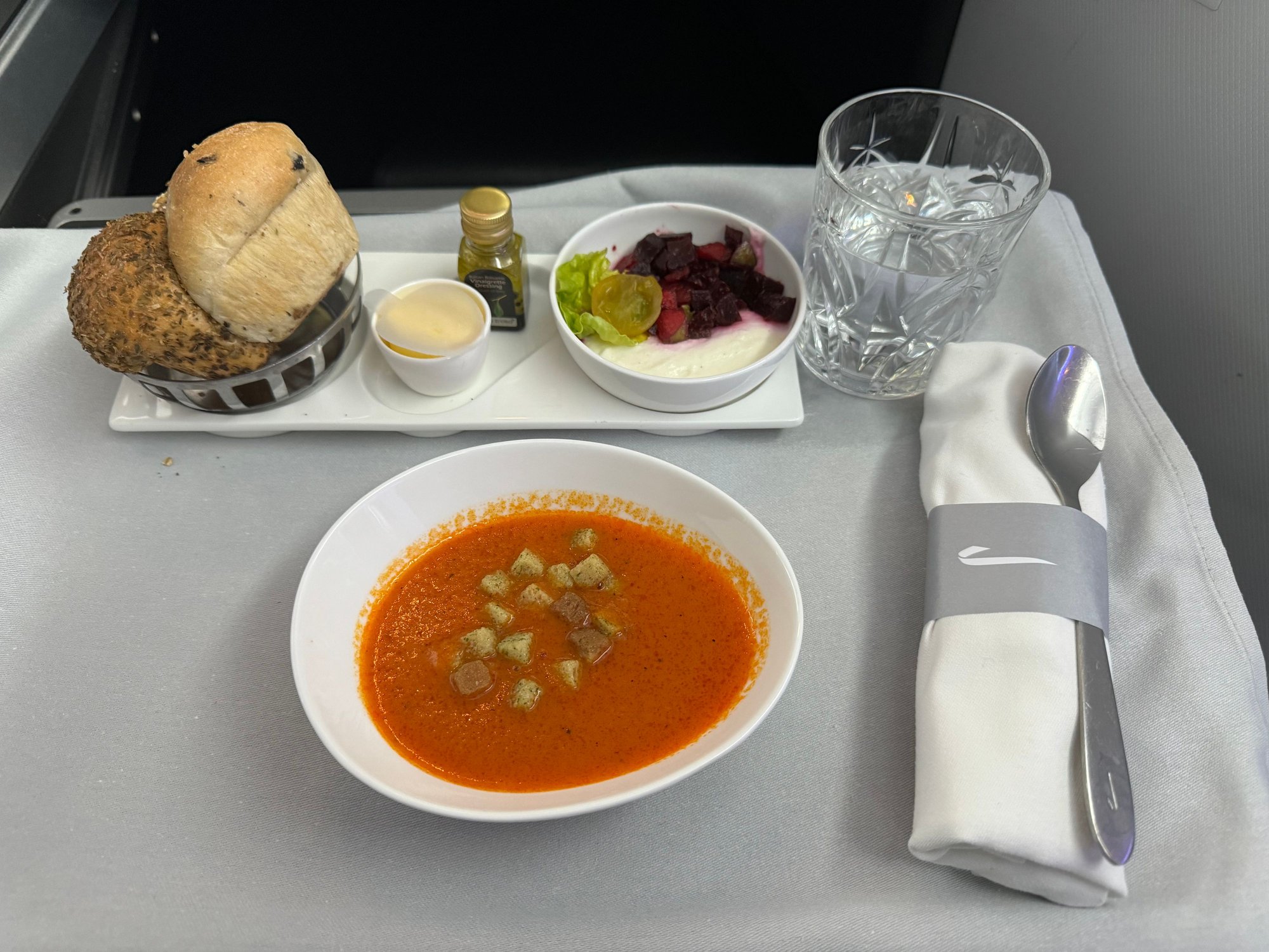 The following was no fault of the crew, but there were only five fish dishes loaded for the 76 Club passengers and they’d all gone to the people in the ten seats that got their order taken before me! There were no biscuits loaded for the cheese. The WiFi only worked for about a hour of the flight. The seat specific reading lights malfunctioned.