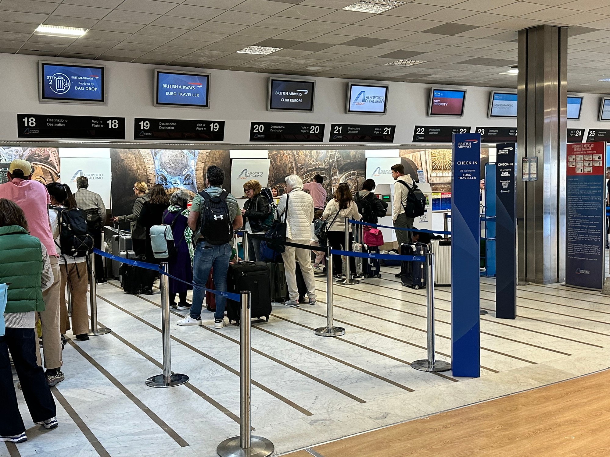 Into the airport which has quite an odd checkin layout, there are three sets of desks in three separate corners of the airport. Finding the BA corner I was going to check if there was a voucher to replace the closed lounge but given there were queues in all lanes I didn’t bother