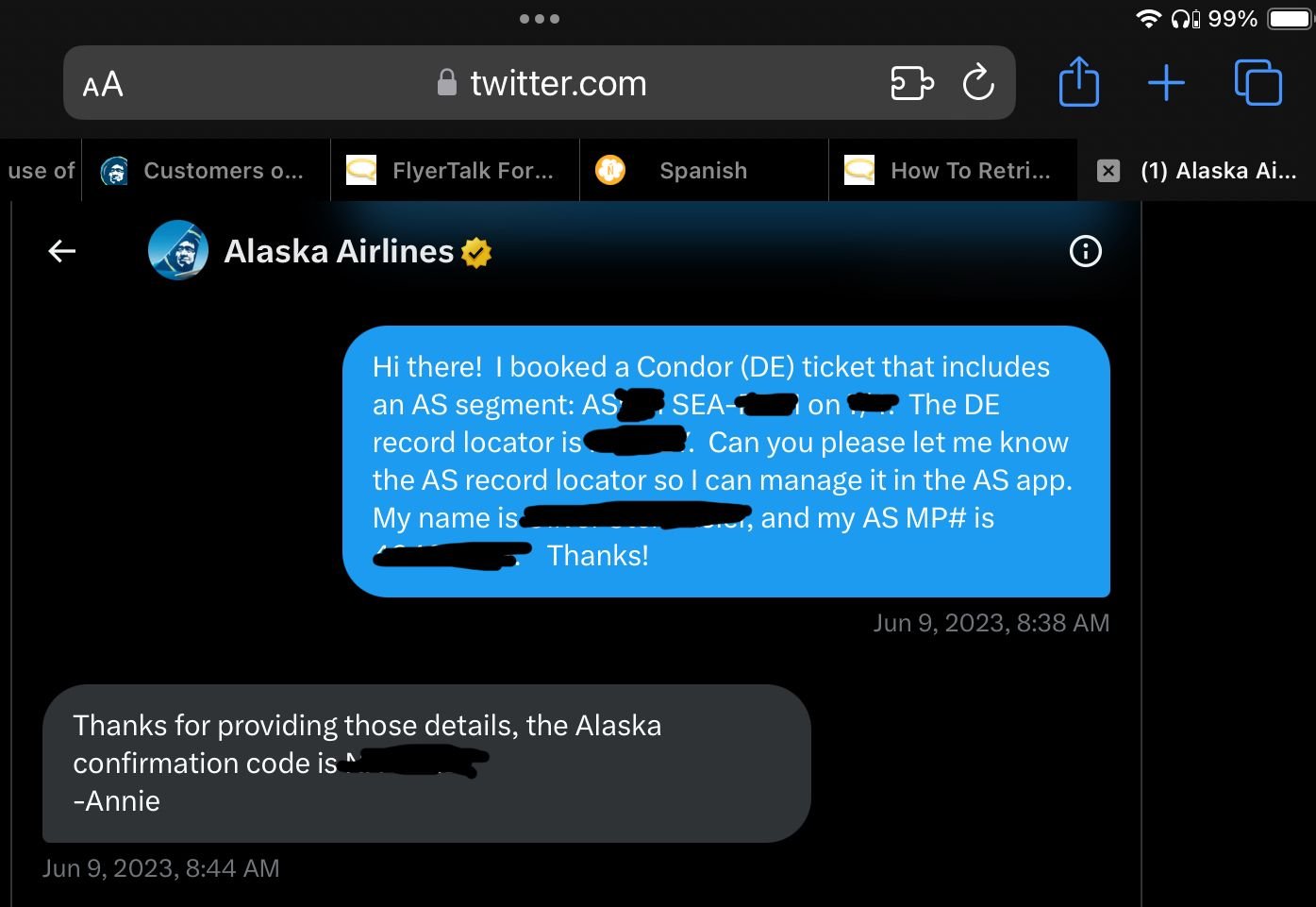 FlyerTalk Forums - View Single Post - How To Retrieve Alaska PNR From Mixed Condor Itinerary