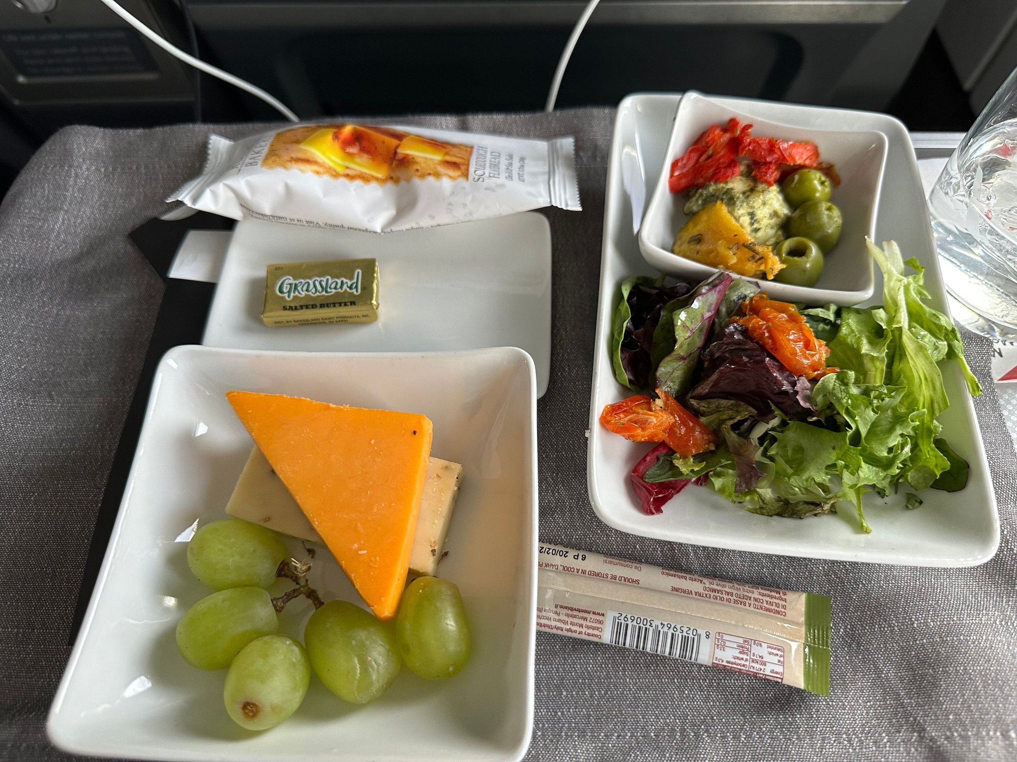 FA was embarrassed in telling folks only 4 meals were catered for the F cabin. She got creative with sides/apps and ended up with below. Mentioned I should complain to AA, but is it worth it?