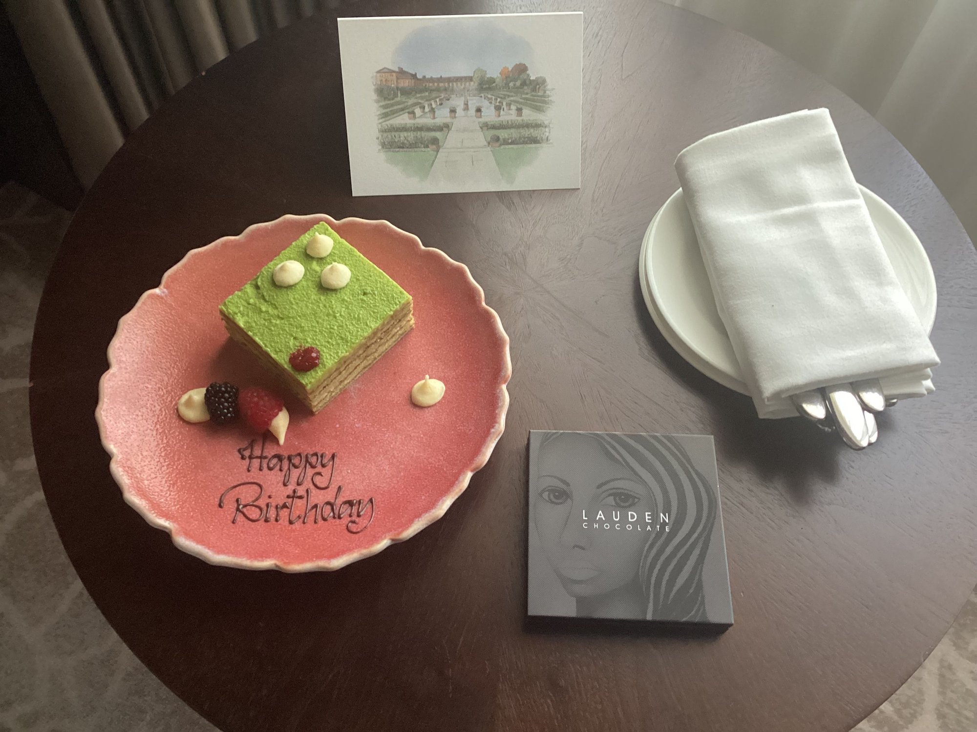 Good - decent upgrade to a larger refurbished room. We were welcomed back by the receptionist. Received points plus welcome drinks, we chose cocktails, as our Diamond amenity. Late check out proactively offered. Stocked minibar. The in room welcome gift was a box of chocolates with a birthday cake and hand written card. We both had a wonderful time in the spa. My son had a 40 minute chair massage followed by a hands on aromatherapy treatment. I just had the chair massage as no therapists were available. When we checked out I had a moan about the change in champagne and the lack of a bath and was given 10,000 points.