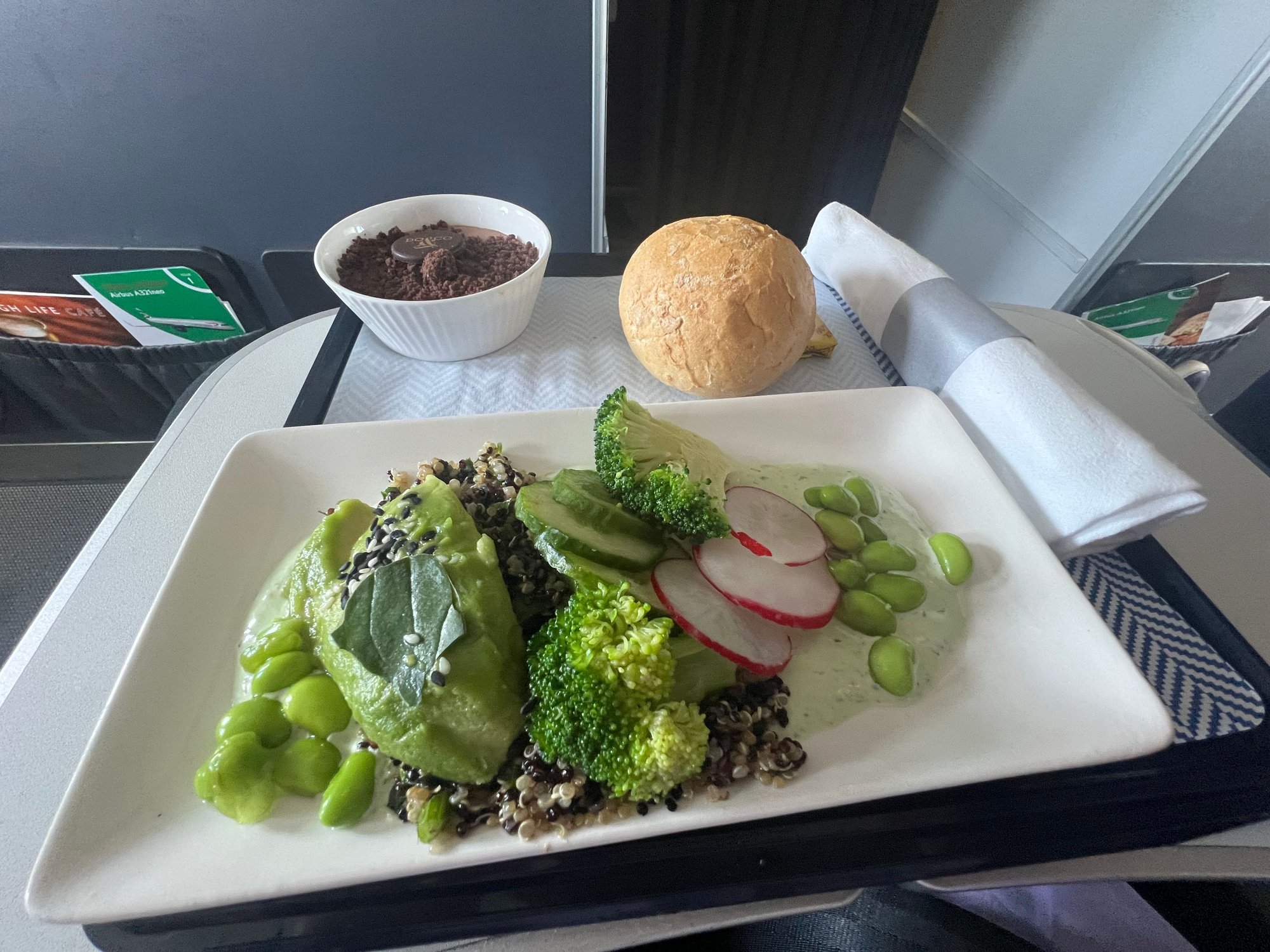 Lunchtime flight to ABZ yesterday. This was a green Buddha plate - avocado, broccoli etc. Other option was a smoked salmon effort which I don’t like. Was tasty and I’m guessing a healthy option.