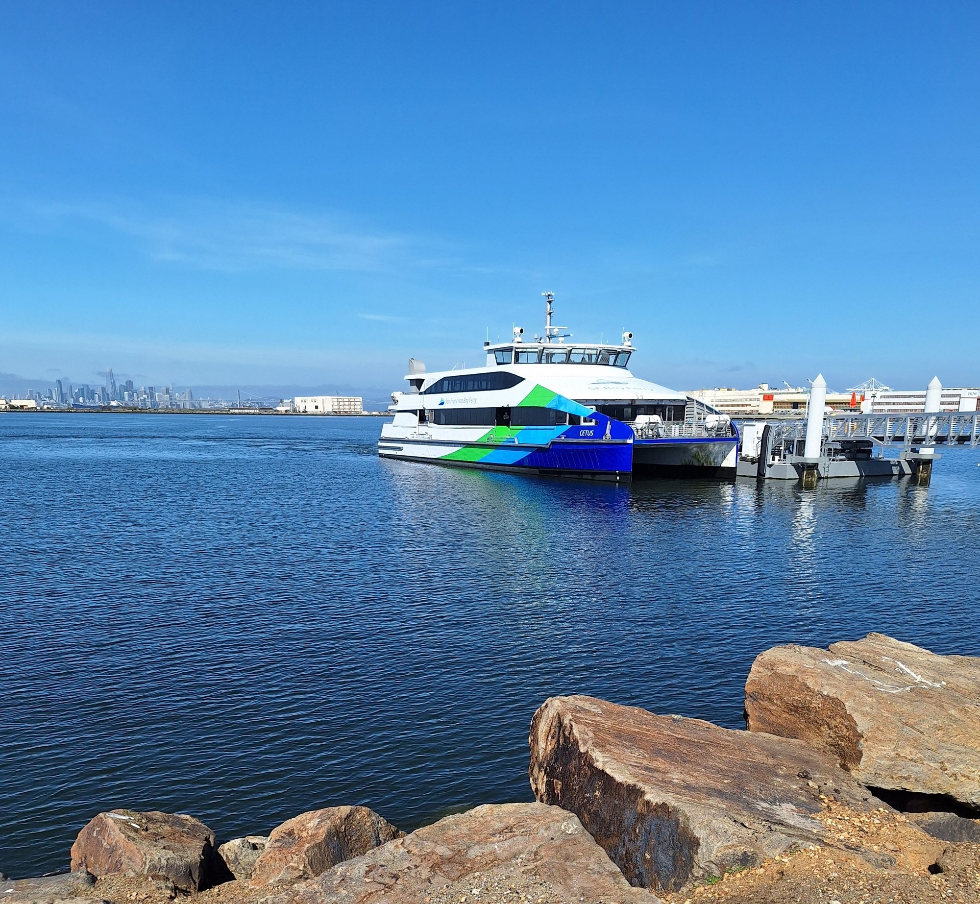 Leaving SF on the Alameda Seaplane ferry. The tall blue and white building is the Salesforce Tower & also a transit center for buses. More about that later!