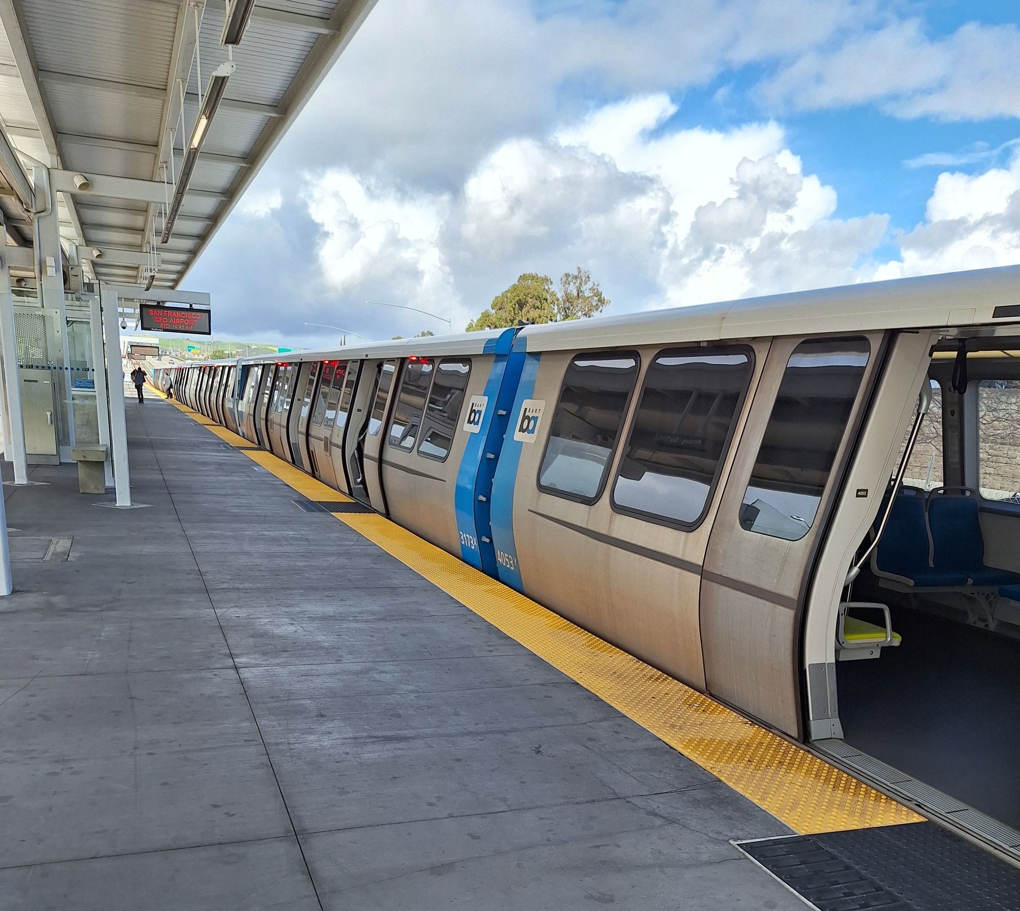 BART electric train at transfer station