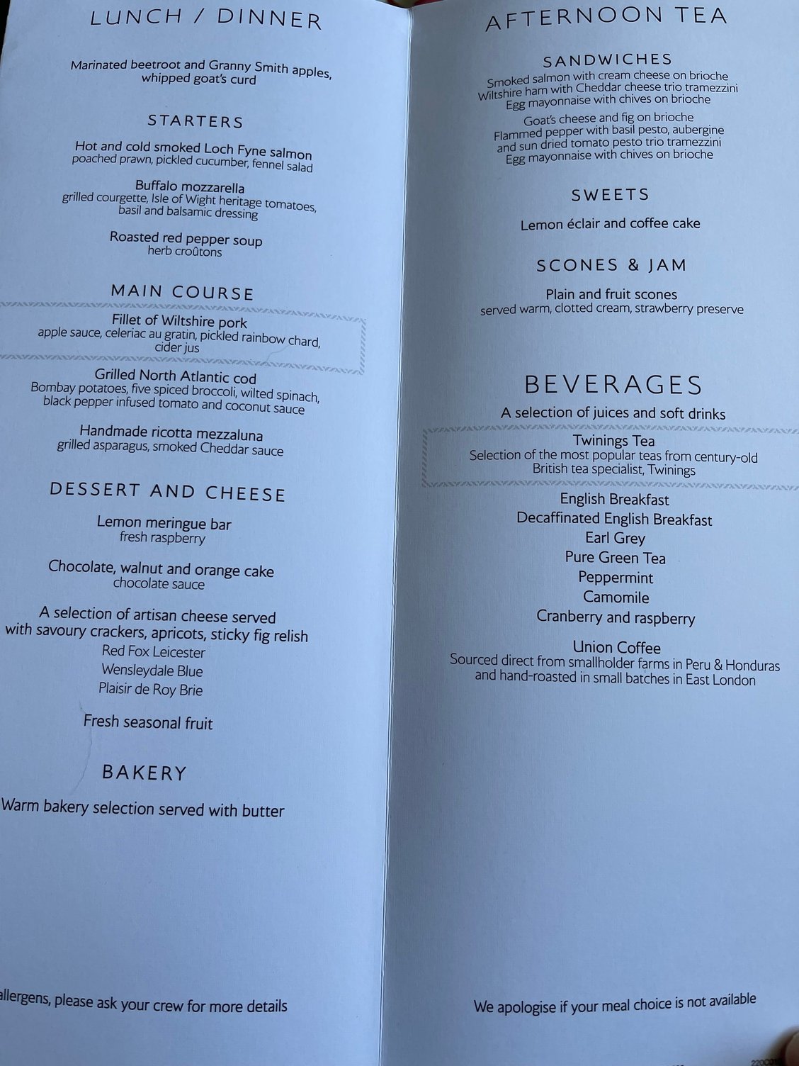 BA177 LHR-JFK 13.20 departure: lunch over to NYC last week, cod was delicious however the PA said his pork was rather dry.