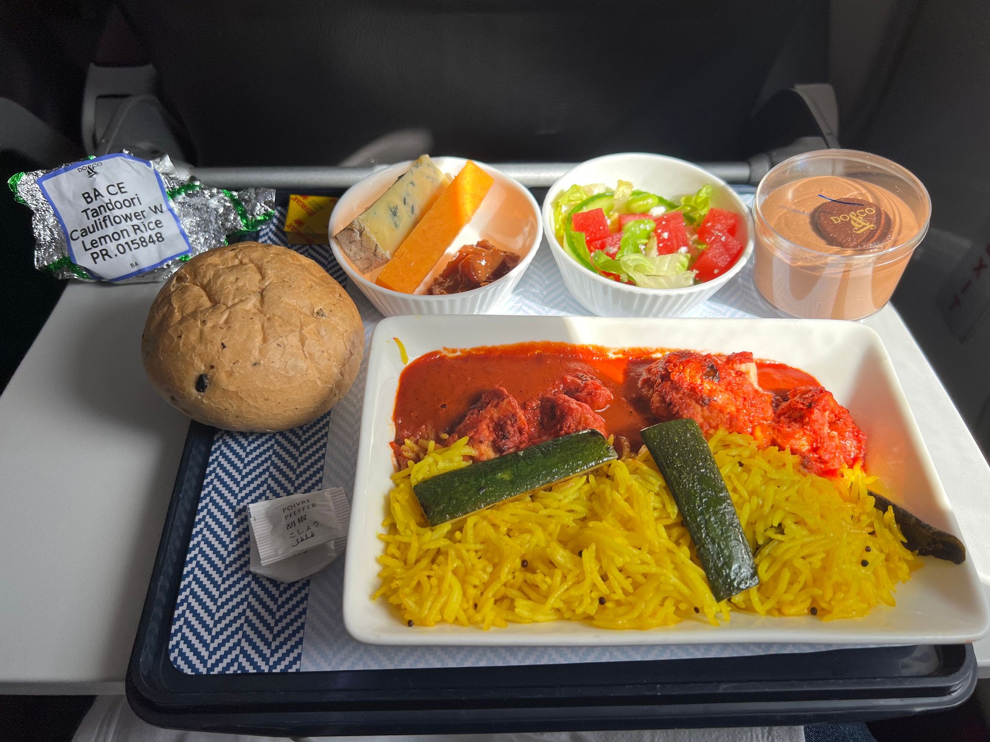 Band 4 out of LHR tonight. Complete with foil on the main (helpful since there were no menus!) lid on the dessert, and a glass not stood up like in post #995 (not pictured). Not overly bothered because the main was fantastic, hot, and I was served first even though I was in row 12!