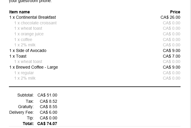 So gratuity is included here, at 8.55, and not included in the free breakfast. Would you add an additional amount to the tip? Should I have pulled cash from the ATM just to tip the guy bringing me breakfast? I never know the correct thing to do.