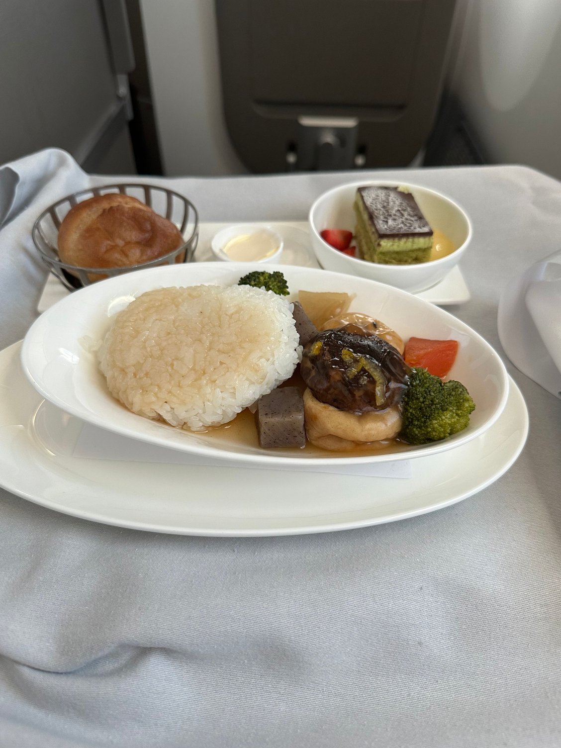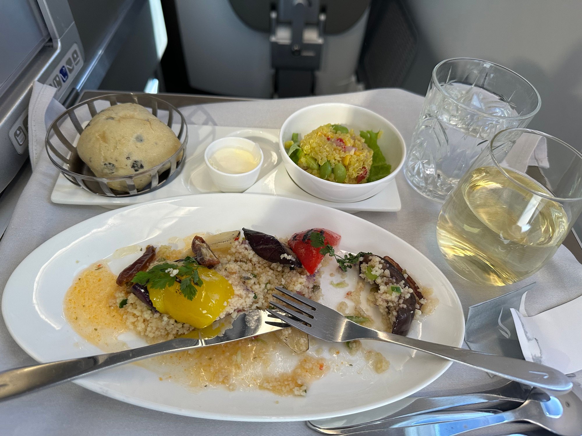 Achingly slow. Meal/drinks service started almost two hours after departure, and it took almost forty minutes after finishing the starter and the receiving the main course. On top of that, when it got to the second meal service, for some reason, despite sitting in the front of the mini cabin (6A) and being Gold, we were served dead last (80 minutes before landing) and they had actually run out of options for the main. Cabin crew started on the other side, worked their way up the mini cabin then back down. We were awake and active, so it wasn't like they were trying to let us sleep. It wasn't a status-heavy flight; the person next to us was one of few in the F lounge and he got served last alongside us. CC did get a meal from F for my husband as he had already ordered the other meal and after about 15 minutes they came back to say they'd run out. Happy they did that but pretty poor overall.