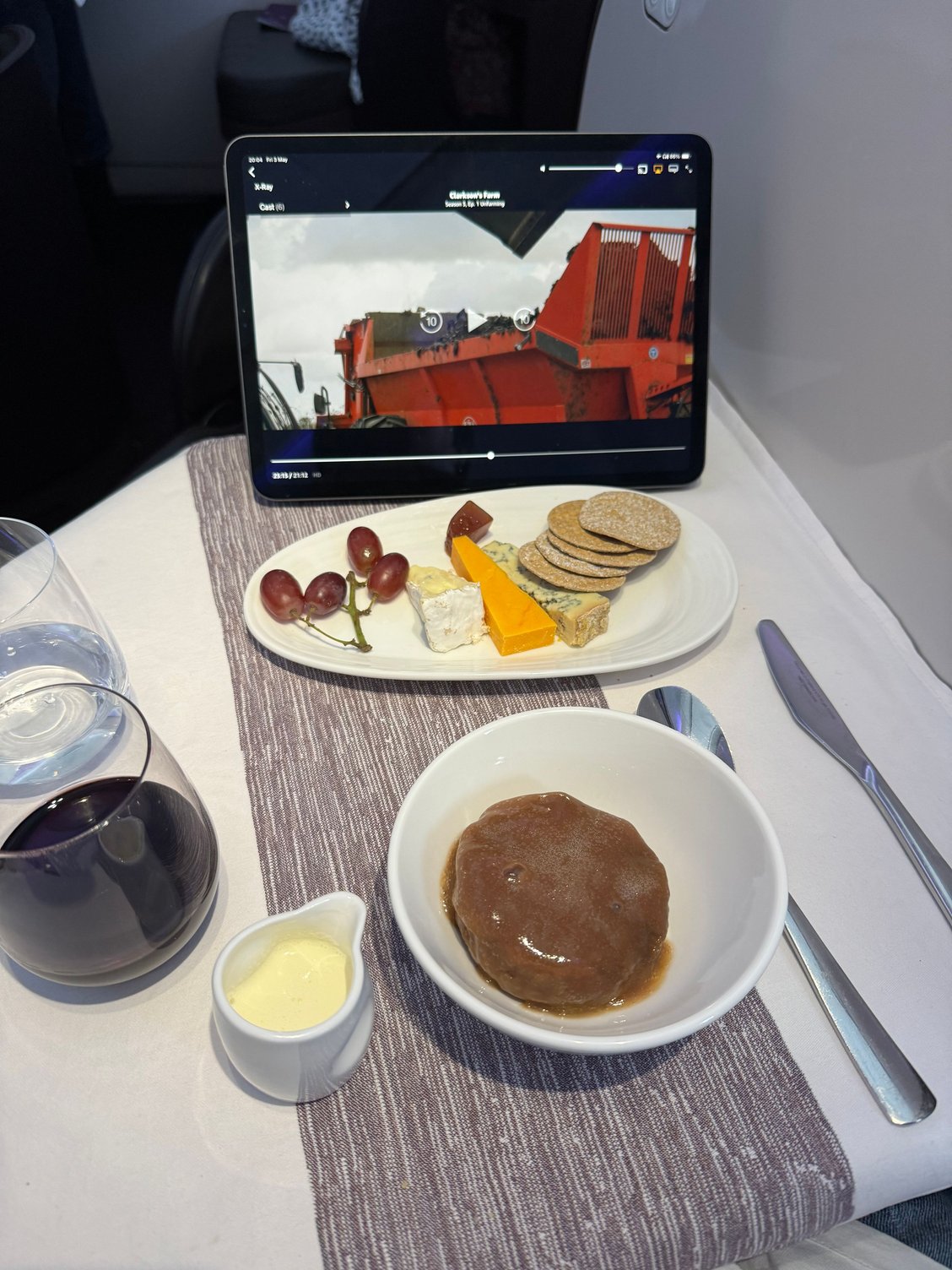 On the outbound, I enjoyed the Clubhouse picnic - served in a wicker basket, there was a nice selection of ploughmans-type food which made a change from having it presented on a plate or wooden board. Plus the usual smoked salmon from the buffet. Onboard, I had the smoked fish starter which was very tasty if a little small, followed by the pre booked curry (chicken achai? something like that). Again this was tasty but a good size portion this time. Followed by dessert and cheese which were good as usual. I then crashed out for 3 hours (at the time still fighting off the remnants of a cold/flu) only waking at the 40 minute call so I didn't get to sample any of the pre-arrival dishes.