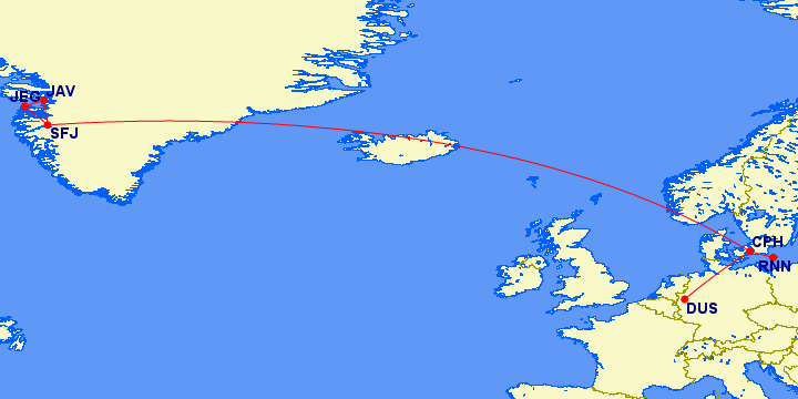 Once the Greenland part was finalised, we planned everything around it. Firstly, we booked a flight from DUS to CPH with SAS and spent two nights in Copenhagen before flying to Greenland. After returning from there, we added a visit to the small Danish island of Bornholm, to which we would fly from Copenhagen and return by a combination of ferry and train. Then another two nights in Copenhagen and a train journey back to Germany and ... voila: Our trip was ready to start!