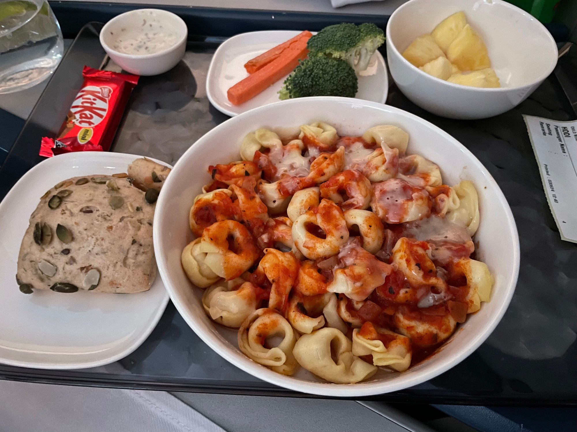 same meals in both direction. Pasta was delicious!
