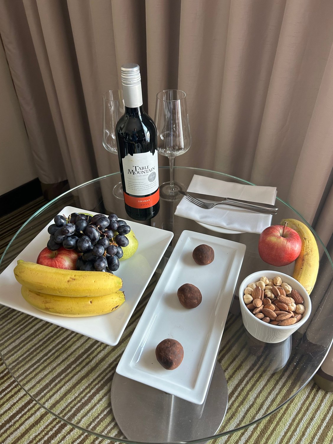 Got to hotel around 8am and was nicely welcomed as Globalist. No upgrade, but fruit with bottle of wine in room.