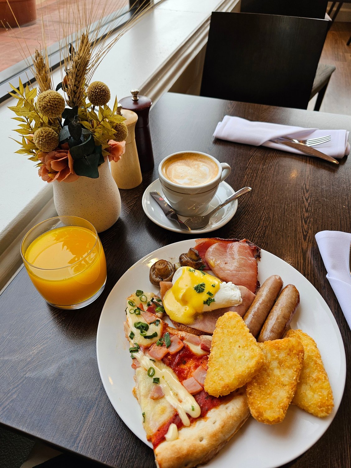 Impressive breakfast in the Riverside Restaurant. Barista-made coffee orders were taken on arrival and the buffet included a wide variety of items and included some less typical hot dishes like breakfast pizza and roast chicken. I enjoyed it enough to skip the club breakfast and go straight to the restaurant every morning.